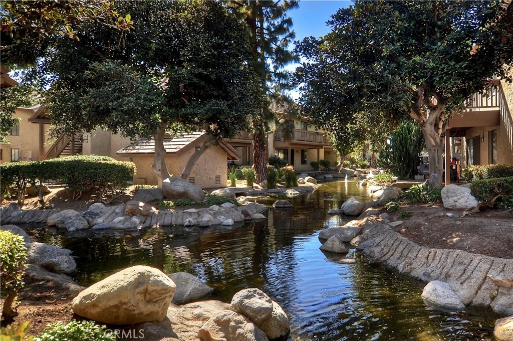 PICTURESQUE WATERFRONT LOCATION, Single Level, no stairs in desirable Orangetree's Lake Condos! Functional and spacious floor plan with one bedroom, one bath and a designated covered carport! Impeccably upgraded with elegant laminate wood flooring, custom LED recessed lighting, mirrored closet doors, custom built-ins, newer sliding door and windows, and even a hidden drop down Murphy bed!! Custom kitchen and bathroom including solid granite countertops, custom hardware, upgraded faucet, upgraded stainless steel sink, and more!! Enjoy resort style amenities including private swimming pools, spa, basketball court, playground, clubhouse plus private tennis, and walking distance to IVC! No Mello Roos!