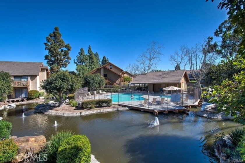 Peaceful location close to Irvine Valley College, upper unit light and bright with cathedral ceilings and a loft for second bedroom or office. Spacious living room and view from private deck overlooking streams. The kitchen includes gas stove, microwave, washer dryer and refrigerator. Custom built hallway cabinets and desk area. Excellent location, serene waterways. 2 pools and spas, one heated year round. 6 lighted tennis courts, basketball court, totlot, Workout gym, clubhouse for reservation with a fee your entertaining needs. 1 Carport assigned. Guest parking and street parking on Apricot Drive nearby. Near freeways, shopping and Irvine Spectrum Center.