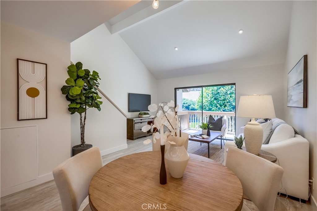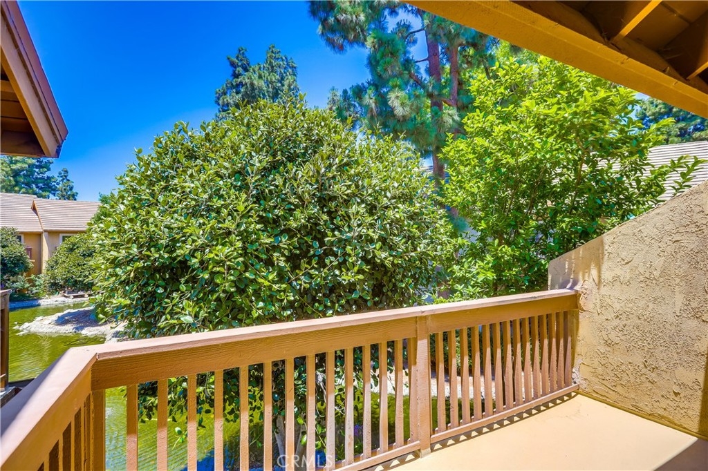 Beautifully remodeled upper-level unit boasting dazzling improvements throughout, everything new new new!!! Located in the desirable Lake Condos community at Orangetree, superbly situated just a few steps from the clubhouse, pool, tennis/pickleball courts, and boasting soothing balcony views of the bubbling pond and meandering streams, you will adore this location! Step inside and soak in the newly remodeled, freshly painted, light filled interior, blessed with an open concept floor plan, gorgeous new luxury vinyl plank floors throughout, new AC Condenser, and new custom lighting setting the stage for the perfect living environment. The living area has soaring vaulted ceilings and direct access to the private balcony overlooking the tranquil community pond and greenbelt creating an ideal indoor-outdoor living space for relaxing and with loved ones. The dining area is open to both the living room and the kitchen, providing an excellent space for entertaining. The exquisite new kitchen has been beautifully redesigned with elegant new Quartz countertops, timeless white Shaker cabinetry, new hardware and pulls, glistening subway tile backsplash, new faucet and undermount sink, new stainless-steel appliances, and a prized breakfast bar. Upstairs includes a fully enclosed bonus loft space which has a new door and closet space, vaulted ceilings, attic access, recessed lighting, and windows overlooking the living room, perfect for an executive home office, den, or 2nd bedroom. The primary bedroom on the main level includes mirrored closet doors and recessed lighting. You will fall in love with the amazing new bathroom with custom Quartz topped vanity, new faucets and fixtures, framed vanity mirror, and a gorgeous custom tiled step-in shower enclosure. This unit also boasts a dedicated laundry nook for stackable washer and dryer; plus ample storage provided in the built-in linen cupboards. This unit includes 1 dedicated assigned carport space, #166, conveniently located nearby. Community amenities include lush green spaces and walking paths, tranquil ponds and meandering streams, 2 community pools and 2 spas, Clubhouse, lighted Tennis, Pickleball, and Basketball courts, and playground. Excellent Irvine location just steps from Oak Creek Golf Club, Oak Creek Community Park, and Irvine Valley College. Close to shopping, entertainment, and dining at nearby Irvine Spectrum and Alton Square. Just minutes from Fashion Island, Newport Beach, and Corona Del Mar.