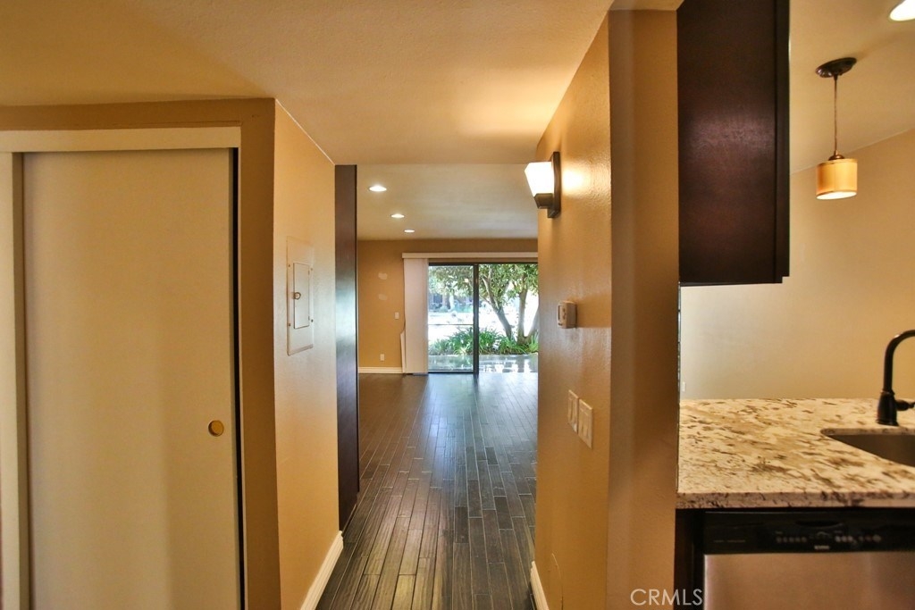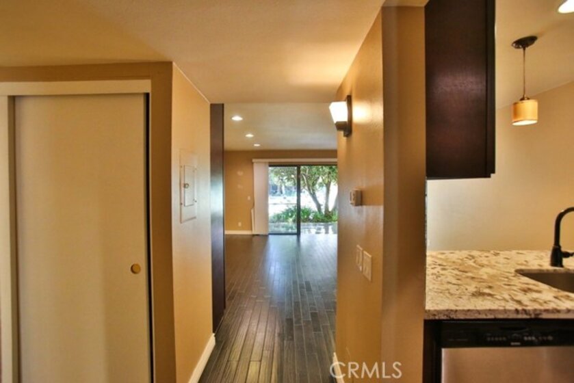 Take a step out and enjoy your full PRIVACY on your patio deck as no one is behind you, Take in the views of the full pond with dancing fountains as this Beautiful Condo Features a Great Patio Location for your family BBQ nights and afternoon lunches. This resort-style community Condo features 717 sq ft (BLD) of living space, one bedroom, one bath, fully remolded kitchen with a full backsplash, granite countertop, new cabinets, newer stainless steel appliances, hardwood flooring, newer custom color paint, and a fully remodeled bathroom with no expenses spared. Stackable Washer & Dryer.