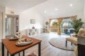 Located in the Orange Tree Lake Condos community, just a short distance from the Irvine Spectrum and Irvine Valley College, this Irvine condo is a must see! Upon entering this 2 bedroom 1 bath upstairs unit, you'll find a spacious open floor plan with vaulted ceilings, lots of natural light, and a large sliding glass door to the private balcony overlooking a pleasant stream. Recently updated with new luxury vinyl flooring, recessed lighting, new sink, and new AC unit. The indoor full size washer and dryer are located in the hallway closet and there is still plenty of storage. Both bedrooms are nice size with large closets and easy access to the bathroom. Enjoy the resort-like community amenities of tennis courts, 2 pools/spas, basketball court, gym, and clubhouse. This unit includes an assigned carport with additional parking permit.