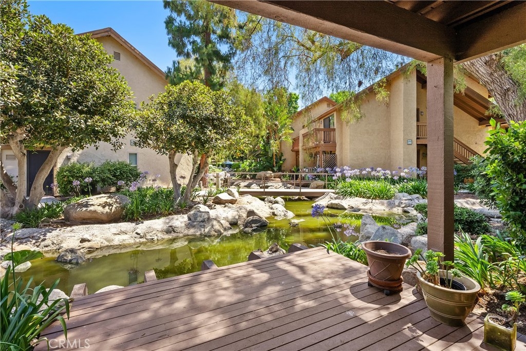 Most scenic & beautiful ground floor Lake View Condo in Orange Tree area with 2 Bedrooms & 1 Bathroom. Gourmet kitchen with upgraded granite countertop. Wood floor and tile floor throughout. Window shutters in bedrooms. Spacious living room with lake view. Community pool, spa , tennis court etc. are just steps away. Enjoy a peaceful day watching the ducks swimming by the waters from the back patio. Washer Dryer hookups in unit. Centrally located with esay access to Irvine Valley College, Oak Creek Golf Course, UC Irvine, Irvine Spectrum etc.