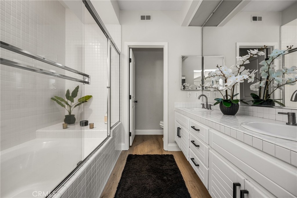 Rare Single-Level End Unit Backing to Mason Regional Park in the Gated Oxford Court Community. One of only eight homes in the community with this floor plan that border the park, this residence offers 1,230 square feet of first-floor living with no interior stairs in Irvine’s highly desirable University Town Center neighborhood. The well-designed layout features two bedrooms and two full bathrooms, including a spacious primary suite with a sitting area and oversized soaking tub. Nine-foot ceilings create a comfortable sense of space throughout. Recent improvements include luxury vinyl plank flooring, new carpet, updated interior doors and hardware, and stainless-steel KitchenAid appliances. The kitchen opens to the dining and living areas for comfortable everyday living. Enjoy a secluded covered patio backing directly to William R. Mason Regional Park, with trail access less than a minute away. Additional highlights include a separate laundry room, an attached one-car garage, and a second detached garage. Residents enjoy a gated community with pool and spa, all within walking distance to UC Irvine and the shops and restaurants at University Town Center. A rare opportunity for single-level living with direct park access in one of Irvine’s most desirable locations.