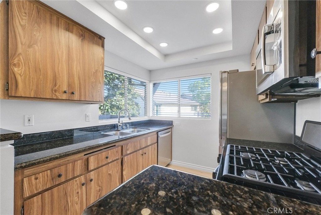 MAJOR PRICE IMPROVEMENT: Lowest-Priced Residential Listing in Woodbridge! Welcome to this gorgeous upper-level end unit in the highly sought-after Woodbridge community. Thoughtfully upgraded and filled with natural light, this home features a seamless open floor plan that effortlessly connects the living, kitchen, and dining areas. Expansive windows enhance the bright and inviting atmosphere. This meticulously maintained home boasts fresh paint, brand-new stainless steel appliances, and elegant acoustically insulated “quiet” LVT flooring throughout. A full-size laundry closet with an adjacent pantry adds convenience and functionality. Outdoor living is a standout feature, offering multiple private spaces: a generous porch patio with its own non-shared entry stair and a balcony off the main bedroom. A separate bonus storage area at the base of the stairs provides additional space. Set in a peaceful location with greenbelt views, this home grants easy access to Woodbridge’s renowned resort-style amenities, including lakes, pools, tennis and pickleball courts, basketball courts, playgrounds, parks, and nearby shopping and dining. The prime location offers seamless commutes to UCI, John Wayne Airport, Laguna Beach, The Irvine Spectrum, and major freeways—all with no Mello-Roos tax. Don’t miss this incredible opportunity to own in the vibrant Village of Woodbridge. Schedule your private viewing today!