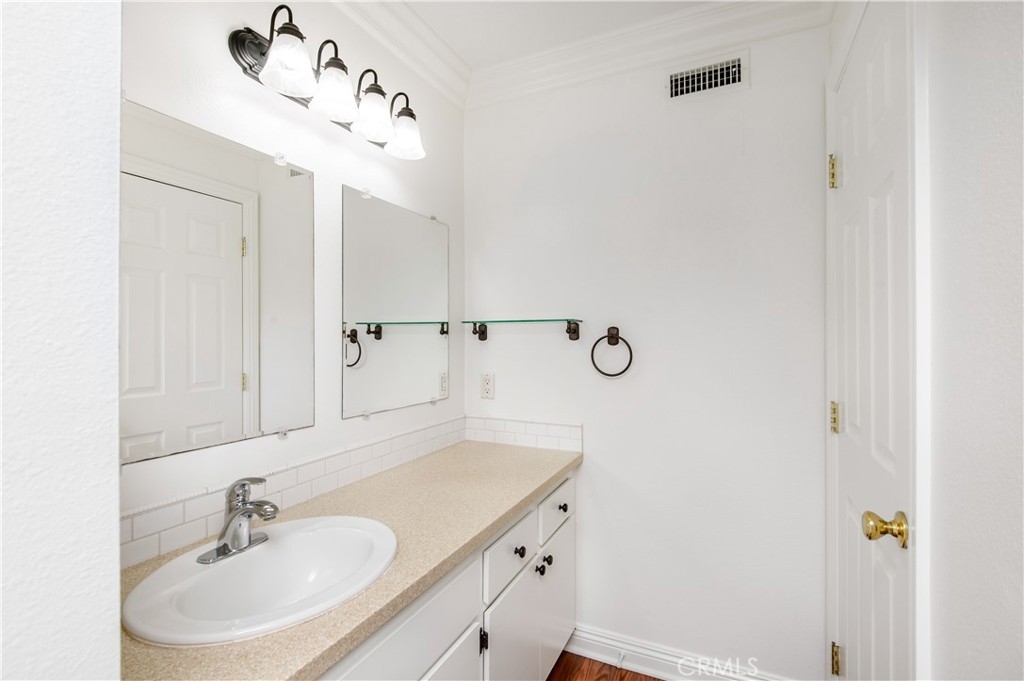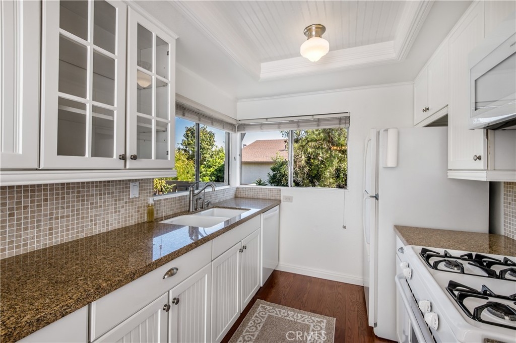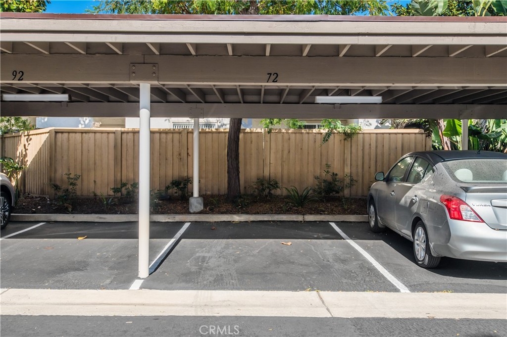 Welcome home to this turn key upper end unit gem nestled in the heart of Irvine's coveted Woodbridge community. The HOA upgraded staircases leads you to a quaint patio that provides a peaceful escape and a great space for potted plants and outdoor furniture. From the moment you step inside, you are greeted by the warmth of laminate wood floors, open layout with recess lighting, and the freshness of newly painted interior. The seamless flow from the living room through the dining area to the kitchen creates an inviting atmosphere. The remodeled galley style kitchen has beautiful white, bead-board style cabinets, a gorgeous tile back splash, granite counter tops, and newly installed dishwasher, microwave & blinds.The master bedroom has an updated bathroom, plenty of closet space and a private balcony perfect for creating that relaxing atmosphere. Across the 2nd bedroom is a charming, full bath with white bead-board walls and a white vanity. Bedrooms come with the fresh carpet & mirrored sliding doors with shelvings. The hallway closet for washer and dryer provides additional storage space & a designated covered carport and an additional storage closet is located outside at the base of the entry staircase. The Woodbridge Village Association's amenities include 2 landmark lakes with docks, 2 beach lagoons, 22 pools, 16 spas, 13 waders, 23 tennis courts, 4 pickleball courts, a splash pad, numerous parks with play equipment, volleyball courts, a big wheel park, horseshoe and shuffleboard facilities, an outdoor fitness course, basketball, volleyball, bocce ball and more. Plus, you're just a stone's throw away from Irvine School District's great schools, high ranking Universities as well as world-class hospitals and finest dining, shopping, entertainment options.