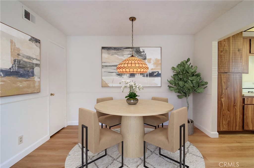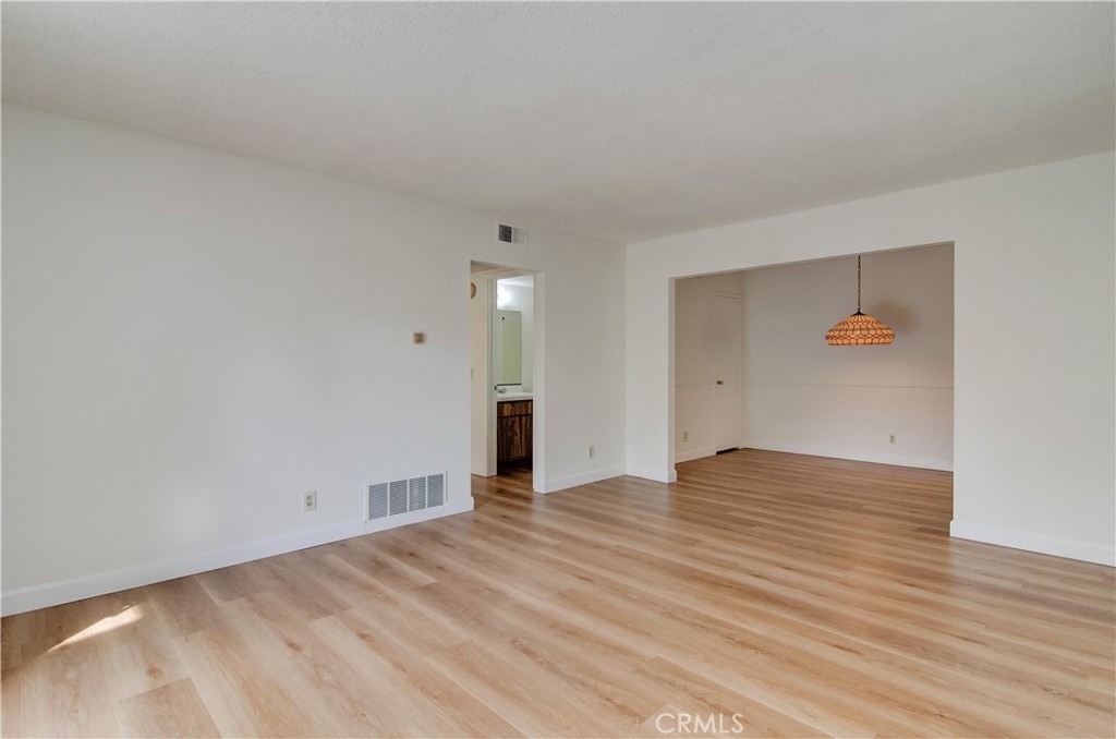 Fantastic purchase opportunity on this immaculate single story 2 br 2 ba lower end unit in the coveted Woodbridge community. Brand new HVAC (furnace and AC) installation completed 02/19/2025. Fresh interior two tone painting, new LVP flooring throughout the unit, and new dishwasher. Interior location with greenbelt views and just steps away from the carport. Spacious living room with sliding doors to backyard, dining area, bright sun filled kitchen with neutral cabinets, large primary bedroom with sliding doors to patio, primary bath, nice size second bedroom, inside side by side washer and dryer closet, forced air heating, storage closet, and large backyard/patio. Unmatched Woodbridge Village Association amenities including 2 landmark lakes with docks, 2 beach lagoons, 22 pools, 16 spas, 13 waders, 23 tennis courts, 4 pickleball courts, a splash pad, numerous parks with play equipment, volleyball courts, a big wheel park, horseshoe and shuffleboard facilities, an outdoor fitness course, basketball, volleyball, bocce ball and much, much more. Location convenient to popular schools, shopping and freeways, UCI, the John Wayne airport, the Spectrum, the Tustin District and the South Coast Plaza. Don't miss out!