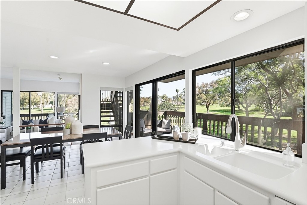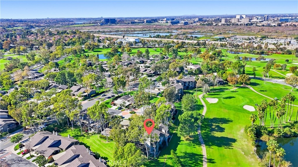 WOW. The door opens, and your attention is immediately drawn outward to an unexpected view of the 12th fairway that sets the tone for the entire home. Large windows frame the surrounding greenery, creating a sense of openness and calm throughout the space. The kitchen faces the dining area and features updated Corian countertops, generous cabinetry, and an extended eating bar ideal for everyday living. Just beyond, a gentle step down leads to the living room, where high ceilings, a fireplace, and sliding doors open to one of two private patios overlooking the fairway. Crisp white finishes keep the interior feeling clean and timeless, while a separate den with built-in shelving and a sink/bar provides flexible space for a home office, reading room, or creative retreat. It’s the kind of home where the pace naturally slows, the outdoors feels ever-present, and the view becomes part of daily life. Rancho San Jaoquin offers 2 pools, spas, club house, EV chargers and dues include trash and water. Easy access to shopping, recreation, Mason Park, highways, UCI and Newport Beach, this is truly a one of a kind home that is sure to please.