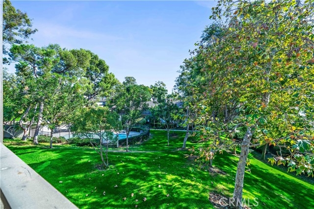 EXPANSIVE VIEWS OF POOL AND SPA, LARGE GREENBELT AND TREES FROM CUL-DE-SAC CORNER LOT IN INTERIOR OF COMMUNITY! AS-IS fixer-upper priced to sell, lowest price in community, so you can do the upgrades you want. This middle-unit condo has only three steps up to the front door with inside living area all on one level, and a 2-car detached garage right in front with additional storage space. Bright home with open floorplan, high ceilings, lots of large windows, indoor laundry, and three outdoor decks with views of all the greenery! Den off Living Room can be converted to a third bedroom or used as an office. Kitchen is open to Dining Room with sliding glass door to an outdoor deck and Dining Room is open to Living Room with fireplace and sliding glass door to separate outdoor deck with views of pool and greenbelt. Down the Hall is the Front Bedroom and Hall Bathroom, and at the end of the Hall is the Primary Bedroom and Primary Bathroom which has Vanity area with double sinks that is separate from shower room. The Primary Bedroom has sliding glass door to its own outdoor deck overlooking the pool. New roof and tenting completed Spring 2023. Residents enjoy access to two community pools and spas, with association dues covering water, trash, and exterior maintenance. Ideally located in the esteemed Irvine School District, including University High, and just minutes from UCI, William Mason Park, John Wayne Airport, Newport Beach, and Fashion Island. This home will go fast!