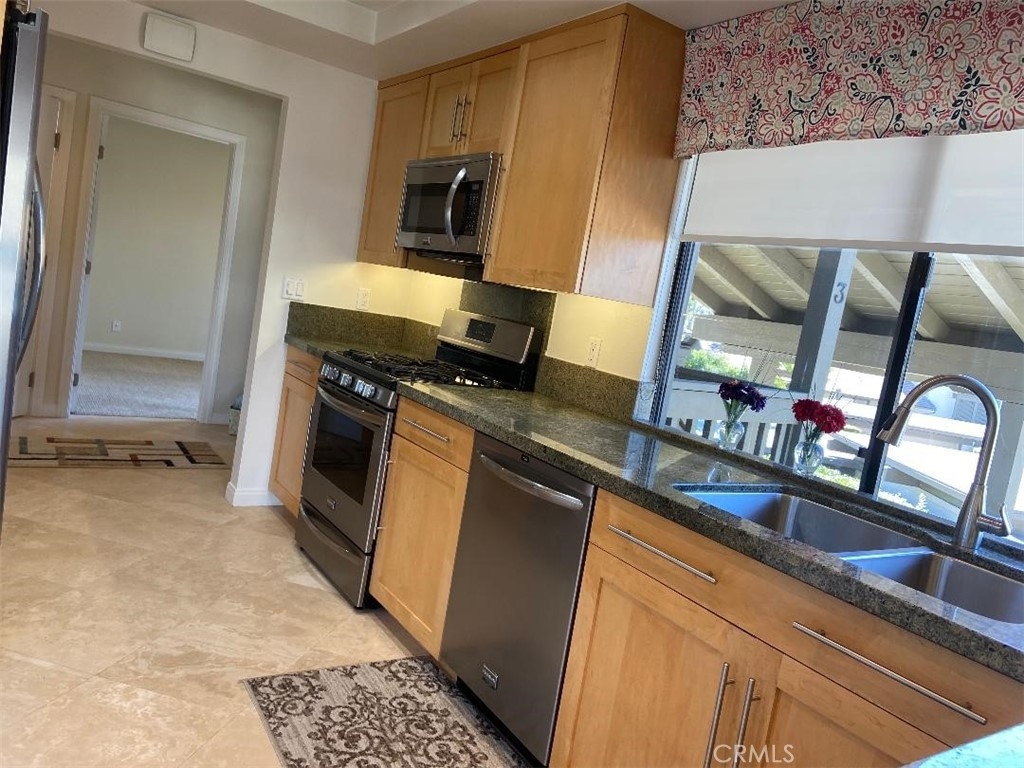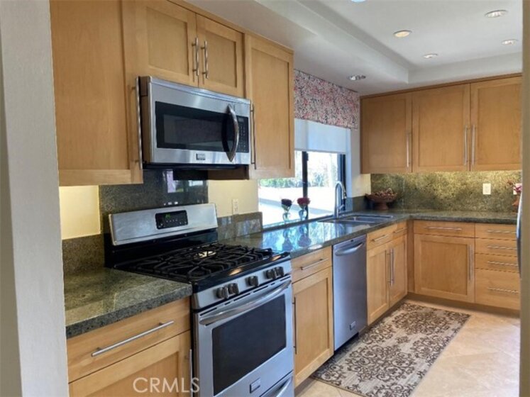Beautiful home located in the highly desired community of Rancho San Joaquin, this top level end unit with 2 bedroom and 2 bathroom. Open Airy plan, enter into a foyer with large living and dinning , fireplace and vaulted ceilings. Kitchen with well maintained granite counter top and tile floor. Master bedroom features high vaulted ceiling, connected to a separated spacious dressing area with dual sinks and two closets, granite counter top, travertine flooring and walk in shower. Two balconies with quiet and serene view of tree lined streets. This desired home close to University of California Irvine, across from large Mason Park, Golf, shopping, restaurants and freeways.