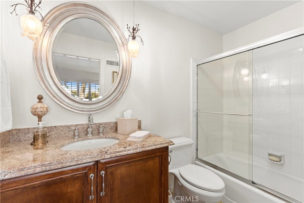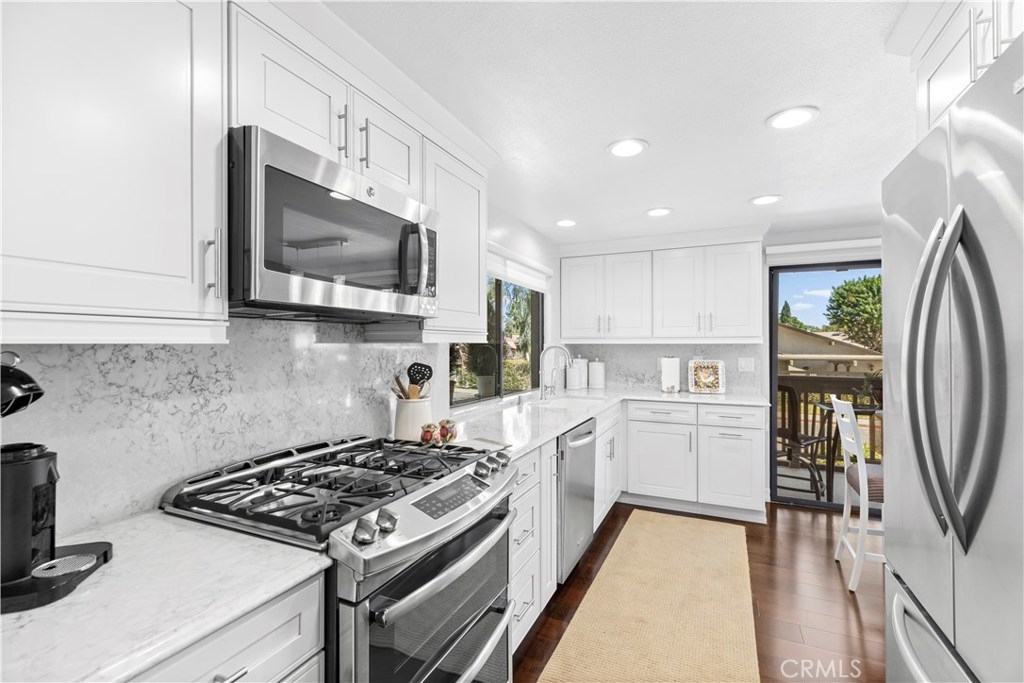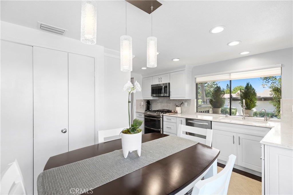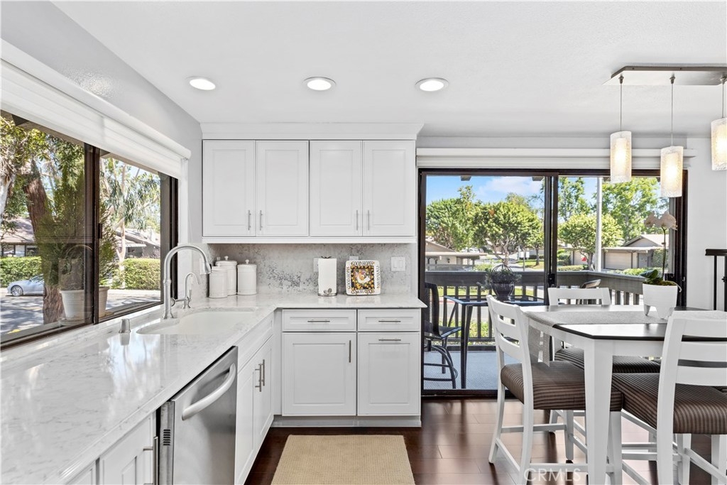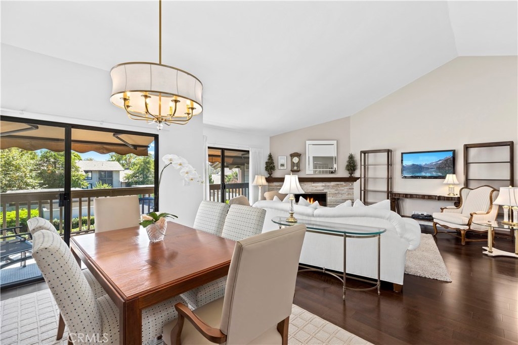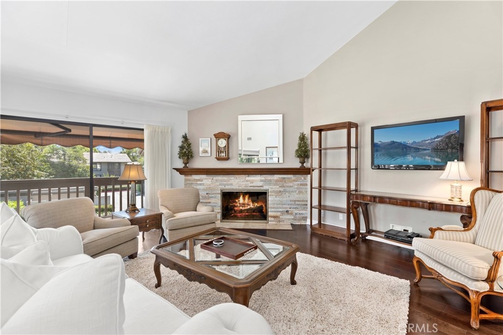 Nestled in the highly desired community of Rancho San Joaquin lies this upper level, end unit 2 bedroom, 2 bathroom condo surrounded by beautiful tree-lined streets and greenbelts. Upon entering the home, you will notice the carefully placed craftsman entry door and well maintained engineered maple hardwood flooring, gourmet kitchen with Quartz counter tops, double oven and Kohler sink with an abundance of natural sunlight flowing into the home making it light and bright throughout. The luxurious master suite features high vaulted ceilings, remodeled bathrooms with granite counter tops, travertine flooring and walk in shower with high quality stone throughout. The open floor plan is ideal for entertaining guests with high vaulted ceilings, custom stone fireplace and two outdoor balconies with retractable awnings which make it easy for to relax and unwind. Community amenities include two resort pools, spas and HOA dues include trash, water and exterior maintenance. Conveniently located next to Rancho San Joaquin golf course, Mason Regional Park, UCI, world class shopping, Fashion Island, South Coast Plaza, OC beaches and zoned to highly rated University High School.