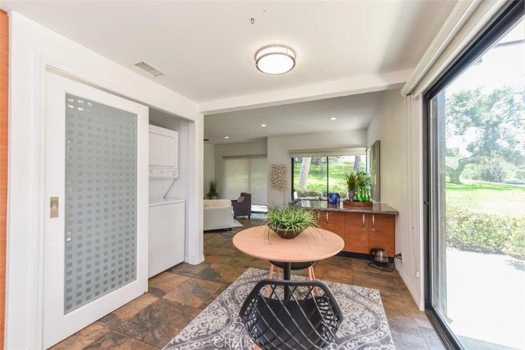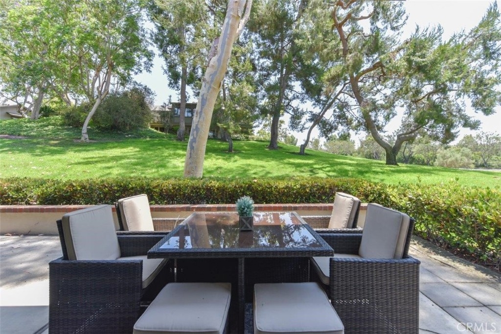 Fabulous Lower Level Corner Location with green belt Views! Rare on market, this home features a wide-open concept floor plan, cathedral ceilings with lots of natural light and three sliding glass doors that open to the private patio off the living room , kitchen and dining room. It has double pane windows, beautiful front door and custom enclosed gas fireplace and ceiling fans, new carpet in the bedrooms. Gourmet kitchen offers granite counter tops, stainless steel appliances,, gas stove top, electric oven, track lighting w/led lights, tile floors, In house laundry has designer sliding doors to stack laundry & shelving. The master bedroom is spacious with bath & closet organizers. it has 2-car garage with lots of storage space. This homes is located in a very private location around the beautiful Rancho San Joaquin Golf Course, a couple of blocks from William Mason Park, very close to UCI, shopping center, Wholesome Choice, Trader Joe's, movie, theaters, coffee shops, walking trails, picnic facilities, freeways, John Wayne Airport and more. No Mello Roos and low taxes. It is absolutely gorgeous .