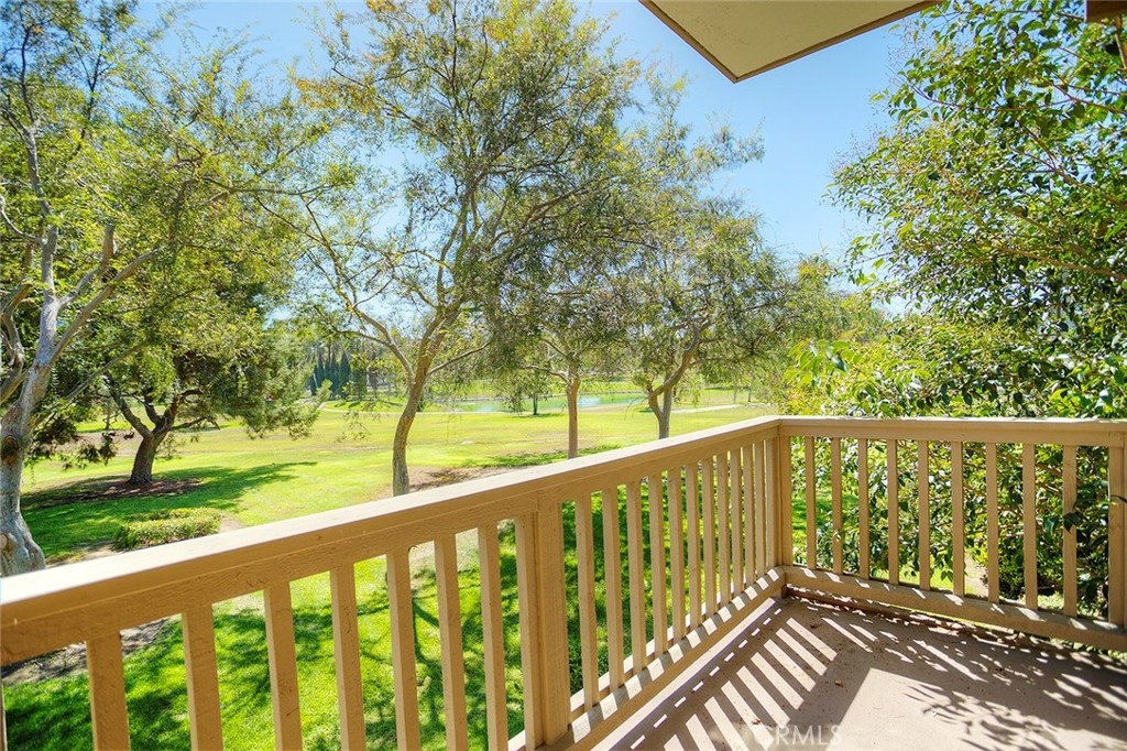 Nestled among trees with an amazing view of the San Joaquin Golf Course, this condo has a peaceful, warm feeling that you can call home. Located in the Rancho San Joaquin Community in Irvine, this open floor plan boasts of two bedrooms, two bathrooms, plus a den that can be used as an office, family room or even a third bedroom, and two-car garage. The well-appointed kitchen has plenty of cabinets, ample counter space, and a separate dining area. Step down into the living room that has recess lighting, a fireplace and Plantation shutters which allow the natural sunlight in. Your living extends to three private balconies that are perfect for barbecues, entertaining, or just relaxing and enjoying the beautiful scenery. The spacious master suite has its own balcony, two large closets and a bathroom with a large vanity and double sinks. For your convenience, laundry is between the two bedrooms. Some amenities offered at Rancho San Joaquin are a community pool, spa, meeting room room and beautifully landscaped common areas. So many options and possibilities for a home owner and/or investor!! Great location!! Just minutes from UCI, William Mason Park, Fashion Island, dining, the beach and freeway access.