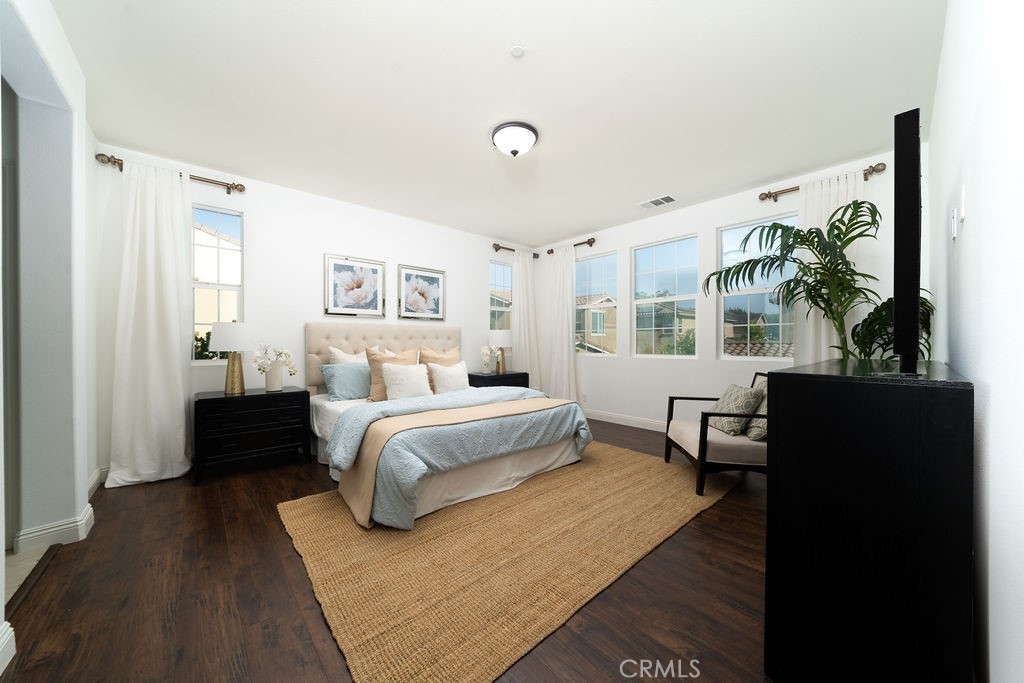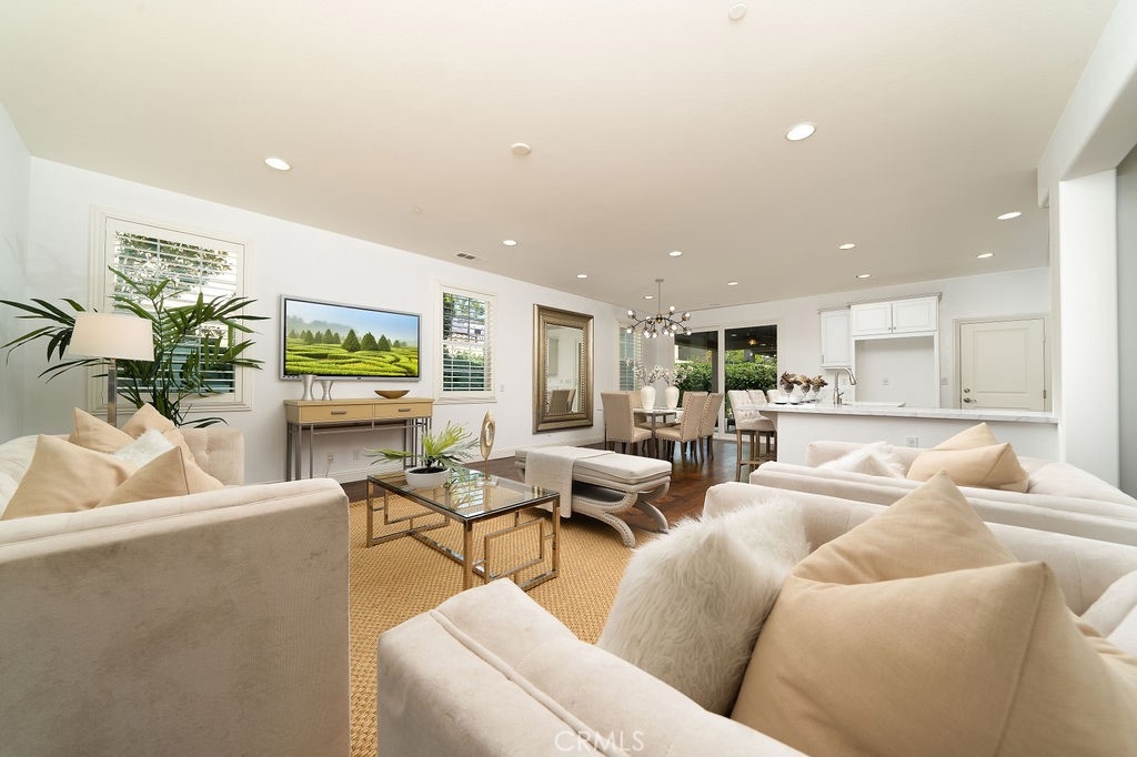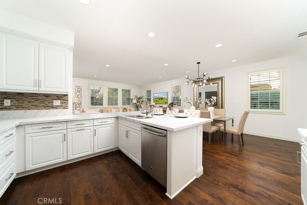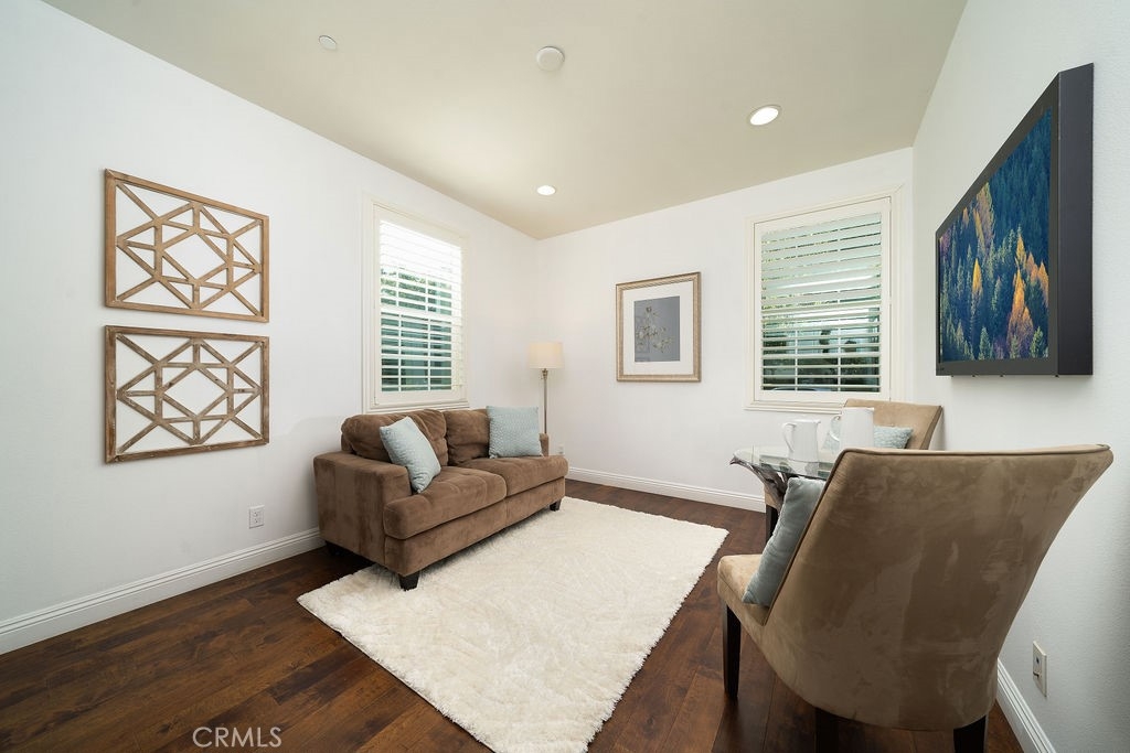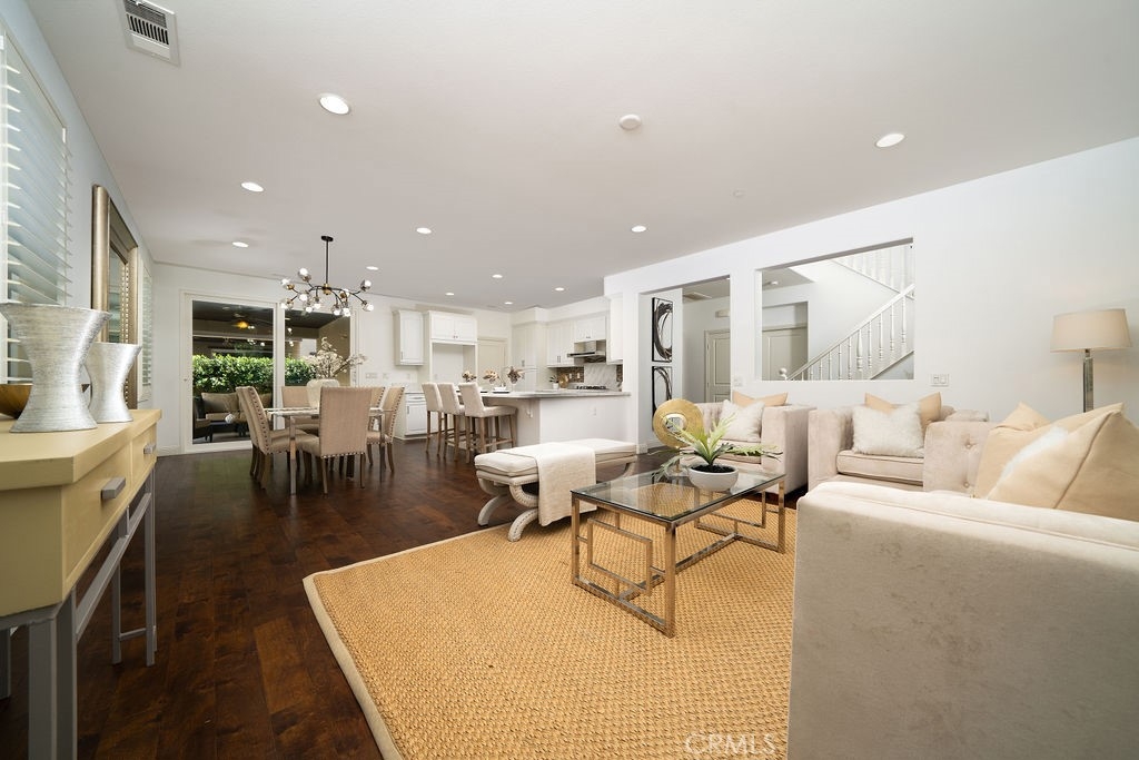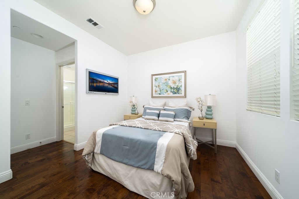 This single-family detached condominium features a full-sized driveway and is part of the rarely available Round Tree Plan 3. It showcases the NEXTGEN (Home within a Home) design in Pavilion Park. The street-facing unit includes a private entrance for the downstairs suite, which offers a seating area, kitchenette, bedroom with an en-suite bathroom, and laundry facilities. The main level presents a great room, an open kitchen, and a powder room, while the upper level hosts three bedroom suites. Throughout this stunning residence, elegant hardwood flooring enhances the bedroom suites, complemented by tile flooring in the bathrooms. A California room and a spacious yard promote exceptional outdoor living. An attached two-car garage with driveway provides added convenience. The property also features a solar system for improved energy efficiency and various eco-friendly attributes. The community boasts excellent amenities, including pools, spas, parks, sports courts, clubhouses, and a greenhouse, elevating the overall living experience.