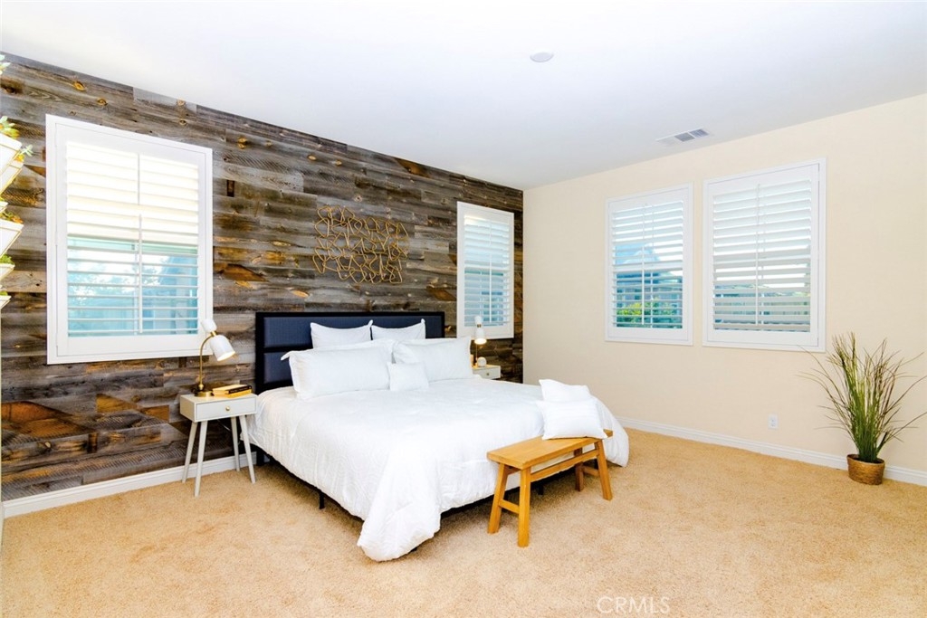 Beautiful Corner Lot Home with High Quality Upgrades Galore! Must See to Appreciate! Move In Condition! Pavilion Park community in the Prestigious Irvine Unified School District. Located on a cul de sac in a very family friendly neighborhood. This Open Concept home has 4 Bedrooms & 3 Bathrooms. Desirable Downstairs Bedroom and Full Bathroom. The Great Room offers ample space for fun and relaxation. The Modern Kitchen is ideal for entertaining with a huge center island, granite countertops, stainless steel appliances, and a huge walk-in pantry. Downstairs is upgraded with real white oak wood flooring and Hunter Douglas Luminette Privacy Shades. The spacious Master bedroom features a custom wall decorated with reclaimed wood and high-quality shutters. The Master bathroom walk-in closet has ceiling height custom shelves and a sliding wood barn door with premium gold hardware. Another bedroom upstairs had built-in drawers added. Double paned glass windows for peace and quiet. The custom designed backyard has artificial grass, easy-to-maintain succulents and lavender plant, and a beautiful star jasmine vine wall. Enjoy some shade and evening meals in the covered patio and the view from the upstairs balcony. Other features include: Solar Panels, Tankless Water Heater, Yard Drip System, and Upstairs Laundry Room. The attached garage was upgraded with many built-in cabinets for storage and epoxy floors. Enjoy all the resort style amenities the Great Park neighborhoods have to offer such as pools, playgrounds, BBQs, clubhouses, trails, and much more. Within minutes to Irvine award-winning schools, shopping centers, and restaurants. With record low inventory and increasing prices, come see this house before it is sold.