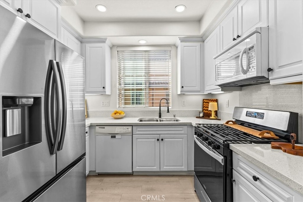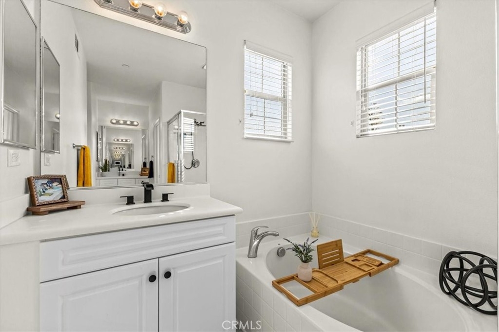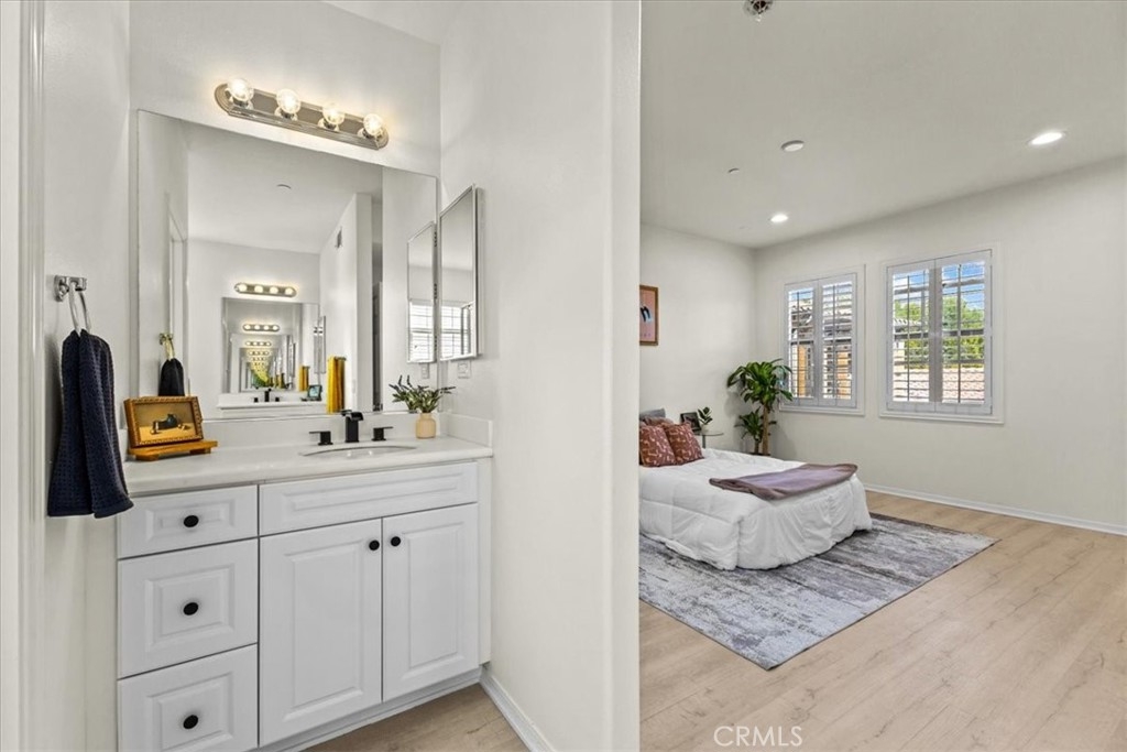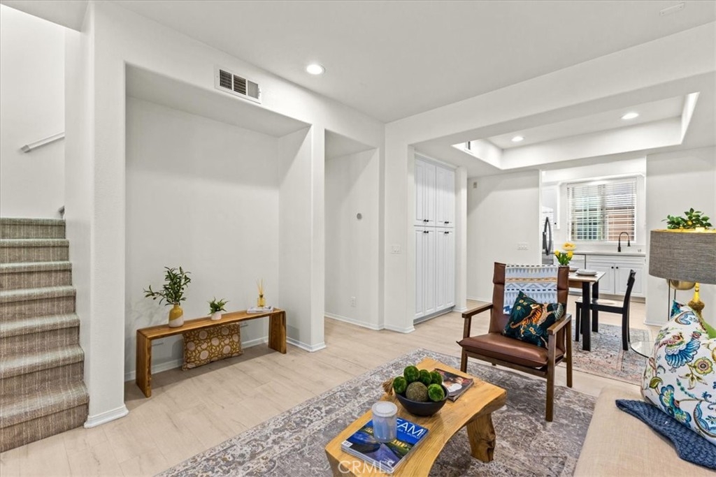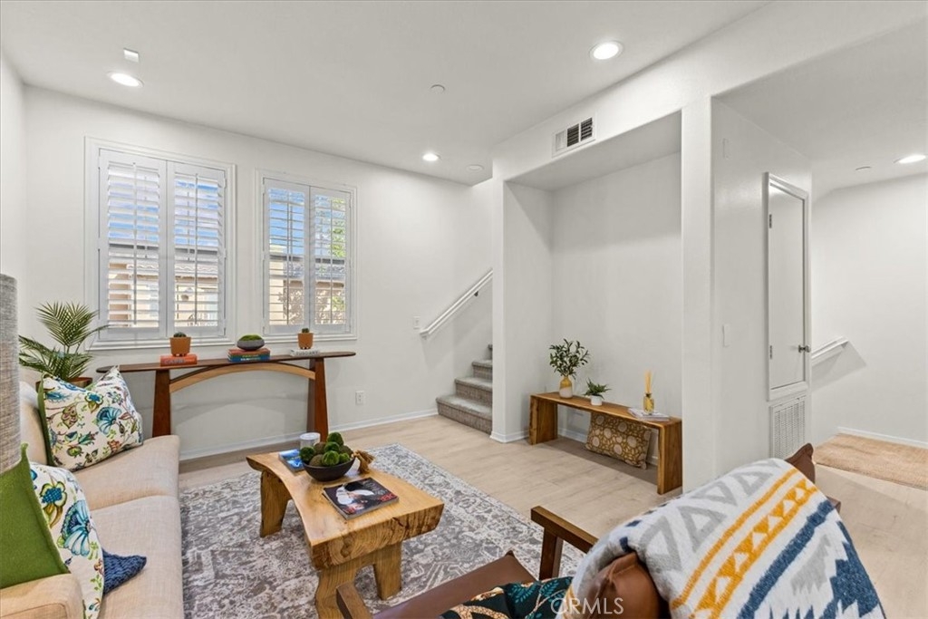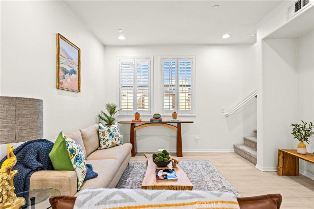 35 Cienega in Irvine's Portola Springs offers a comfortable and convenient living experience within the vibrant San Carlos community. It's a place designed for ease, whether you're starting out or seeking more space. Upon entering, you'll find a dedicated laundry room and direct access to a two-car garage, streamlining your daily routine. The main living level features high ceilings and abundant natural light, creating an open and welcoming atmosphere. The living area flows seamlessly into the dining room and connects to a modern kitchen, boasting white cabinetry, new appliances, and recently upgraded quartz counters. A versatile second bedroom and a full bath on this floor provide flexible options for guests or a home office. The top floor is dedicated to the private primary suite. This space includes a sizable bedroom with a walk-in closet featuring custom shelving and an updated en suite bathroom with new faucets and hardware. Throughout the home, neutral carpet and LVP offer a fresh, cohesive look, complemented by custom baseboards and new recessed lighting. Beyond your door, the active Portola Springs community awaits. You're just steps from Silverado Park, which offers a Jr. Olympic size pool, spa, tennis courts, and basketball courts. A recreation center and clubhouse are available for community gatherings. Numerous other neighborhood parks are also a short walk away, providing ample green space for outdoor enjoyment. Families will appreciate being part of the highly-rated Irvine Unified School District, with Portola Springs Elementary School within walking distance. The location also provides convenient access to major freeways and nearby shopping and dining options. 35 Cienega offers a desirable Irvine location within a community known for its amenities and welcoming atmosphere. This home is ready for its next chapter.