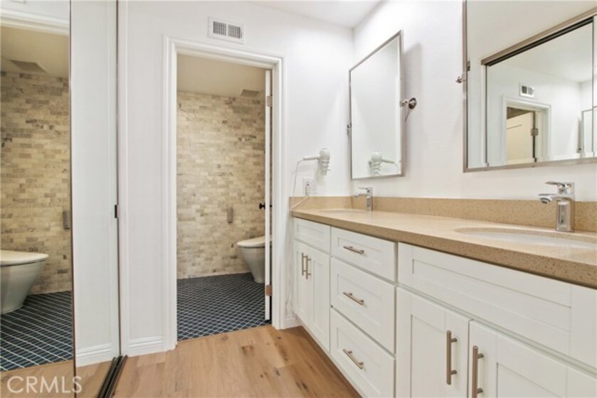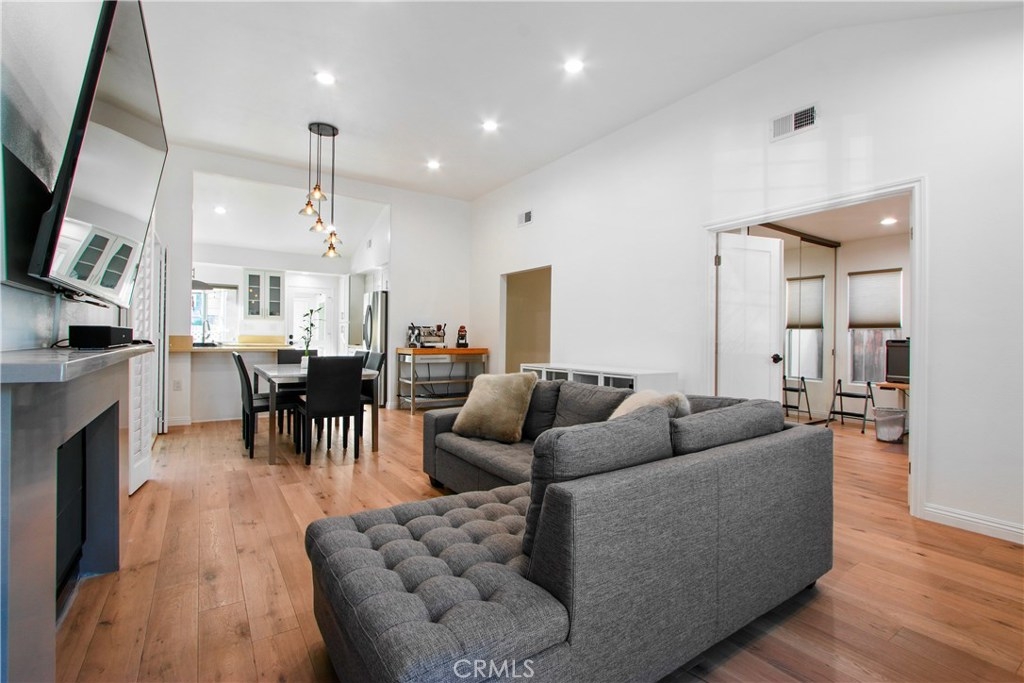 Rare Picture Perfect Fully Updated/Remodeled Detached Home with over $50K in upgrades. Home is situated within a short distance from the majestic South Lake of prestigious Woodbridge community. There's NO Mello-Roos tax and very LOW HOA fee. Step into the living room w/ upgraded fire-on-ice fireplace and view the open concept floorplan with expansive vaulted ceiling and real hardwood flooring throughout that create the feeling of warmth and openness. The updated kitchen with Quartz Counter-tops has stainless-steel appliances with ample white cabinet space and storage. The spacious formal dining room is off the kitchen with large double glazed sliding door that leads to a sizable maintenance free backyard with charming wood deck and red brick hardscape that creates a perfect sanctuary for a Barbecue gathering. Both bathrooms are remodeled with trendy marble and porcelain tiles with floating mirrors and high-end Toto toilets. This 2-bedroom and 2-bathroom home has many recent upgrades which include extensive electrical works, solid wood doors with Baldwin hardware to all doorways, recessed lighting with high CRI LED bulbs, all-new mirror closet doors, new interior paint, wired for data throughout and Hunter Douglas Duette Honeycomb window shades. The 2-car garage with direct access has epoxy flooring with finished drywall and new paint, recessed LED lighting, utility sink and attic add-on. This home is absolutely move-in ready and will not last so hurry on up and make an offer.