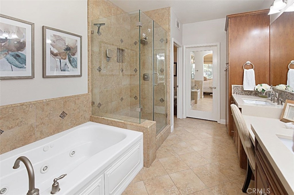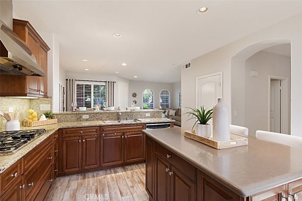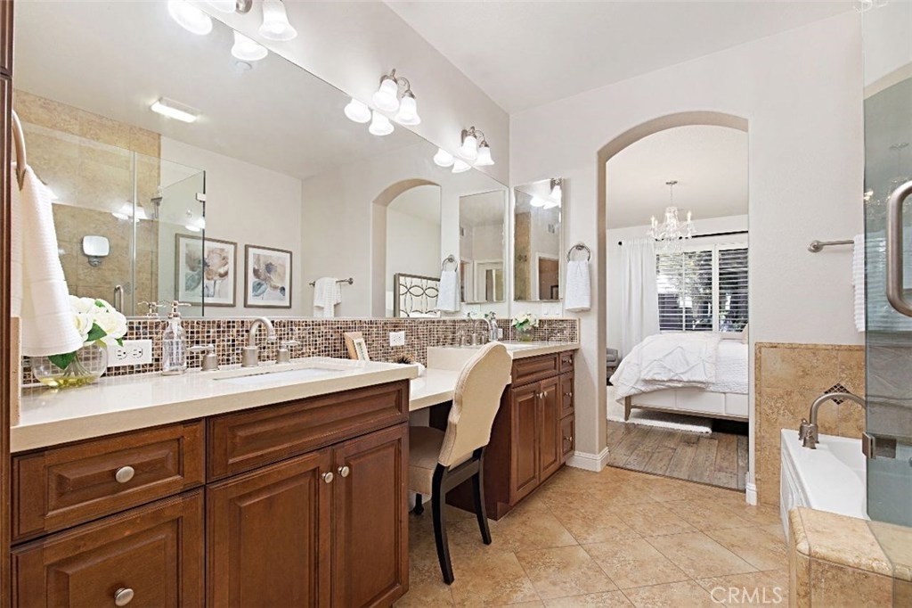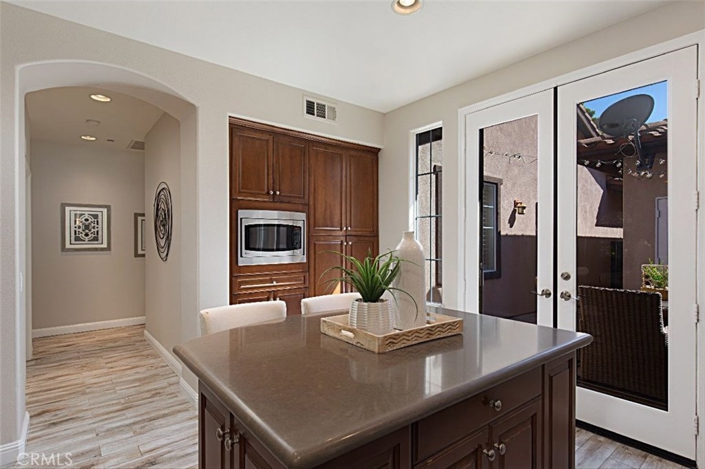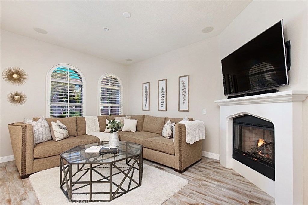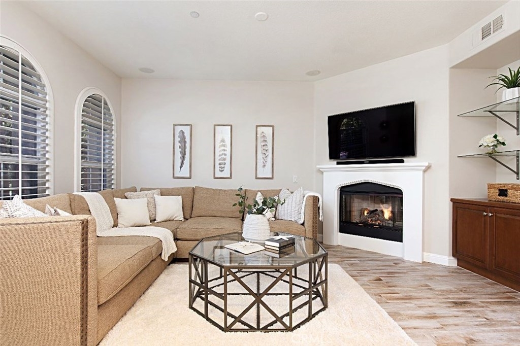 Boasting charming curb appeal and premium location on a tree-lined greenbelt, this premier single-level floor plan is rarely on the market. Thoughtfully designed for those desiring one-story living, this stunning open layout makes a striking impression while designer upgrades reveal pride of ownership that make this a unique opportunity for the savvy buyer. Light and bright, the inviting great room welcomes visitors with walls of windows, romantic arches, cozy fireplace and beautiful accoutrements. Chef-inspired kitchen with stainless appliances, rich cabinetry, custom island and extended breakfast bar flows casually into relaxed dining and generous family room creating the ultimate setting for comfortable living. French doors open to the heart of the home, an enchanting private courtyard that blurs the division between indoors and outdoors with striking fireplace and whimsical cafe lights encouraging al fresco dining and outdoor living and entertaining. Relax and recharge in the luxurious master suite with spa-like bath and huge walk-in closet. All bedrooms boast ensuite baths with the third bedroom being a separate casita with private entry, enriching this home’s value and offering comfortable living space for everyone. Within the highly-acclaimed Irvine School District and just steps to the community park and clubhouse with resort-style pool and spa, don’t miss this rare model-like home.