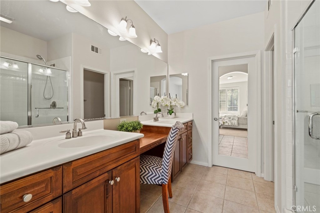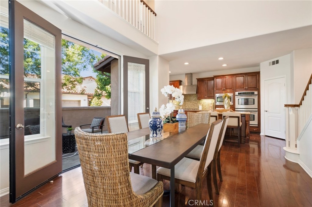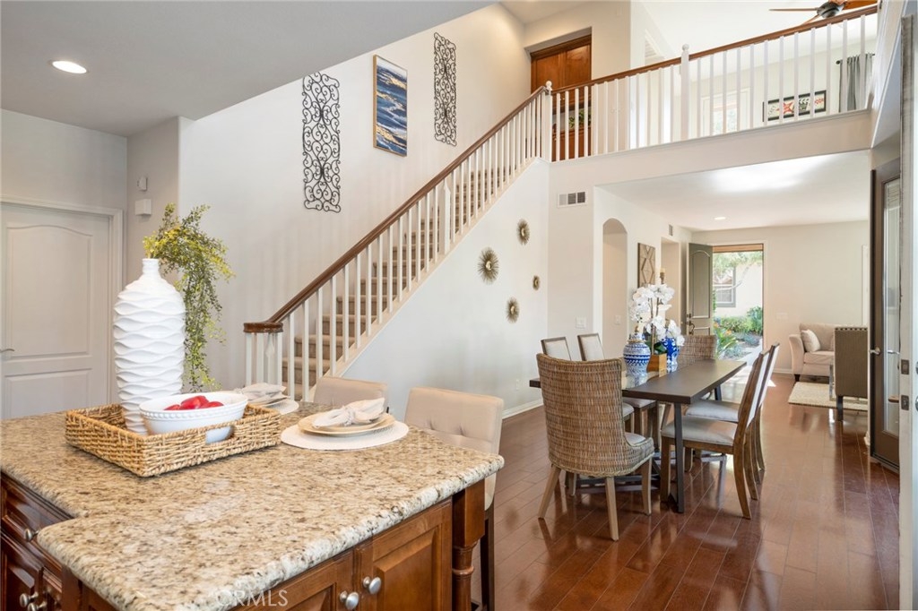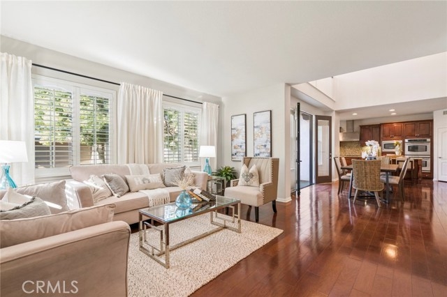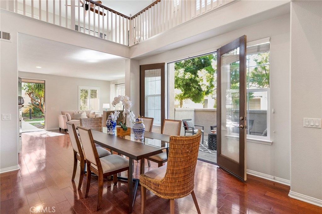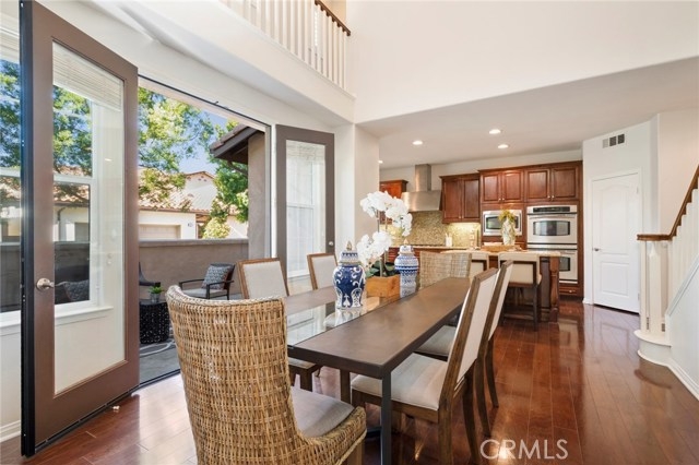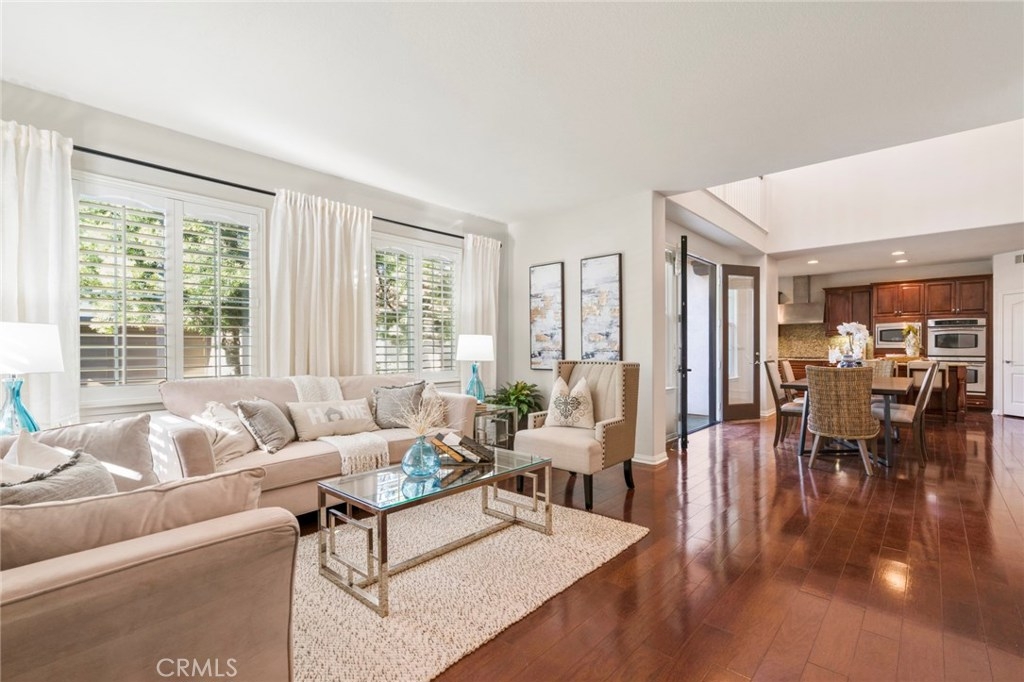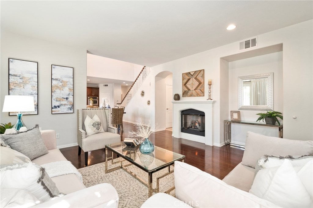 Boasting stunning curb appeal and premium corner location on a quiet, tree-lined greenbelt with desirable privacy and lush views. This breathtaking home is thoughtfully designed with extended family and guests in mind, offering rare dual master suites, one on each floor. Featuring luxurious comforts that surpass every home in this price range, this dramatic open layout offers comfortable living. Expansive great room welcomes visitors with walls of windows, cozy fireplace and gorgeous hardwood flooring. Chef-inspired kitchen boasts extensive cabinetry, granite surfaces, stainless appliances and spacious island overlooking casual dining area with soaring ceilings and lots of natural light. French doors lead to enchanting vistas and inviting courtyard welcomes outdoor living and entertaining. Relax and recharge in your luxurious ground floor master suite with spa-like bath. A spacious secondary master upstairs, generous bonus room, and two additional bedrooms, one with en-suite bath, enrich this home’s value and offer living space for everyone. Within the highly acclaimed Irvine School District and steps to the community park and clubhouse with resort-style pool and spa, this model-like home is a rare opportunity at this price.