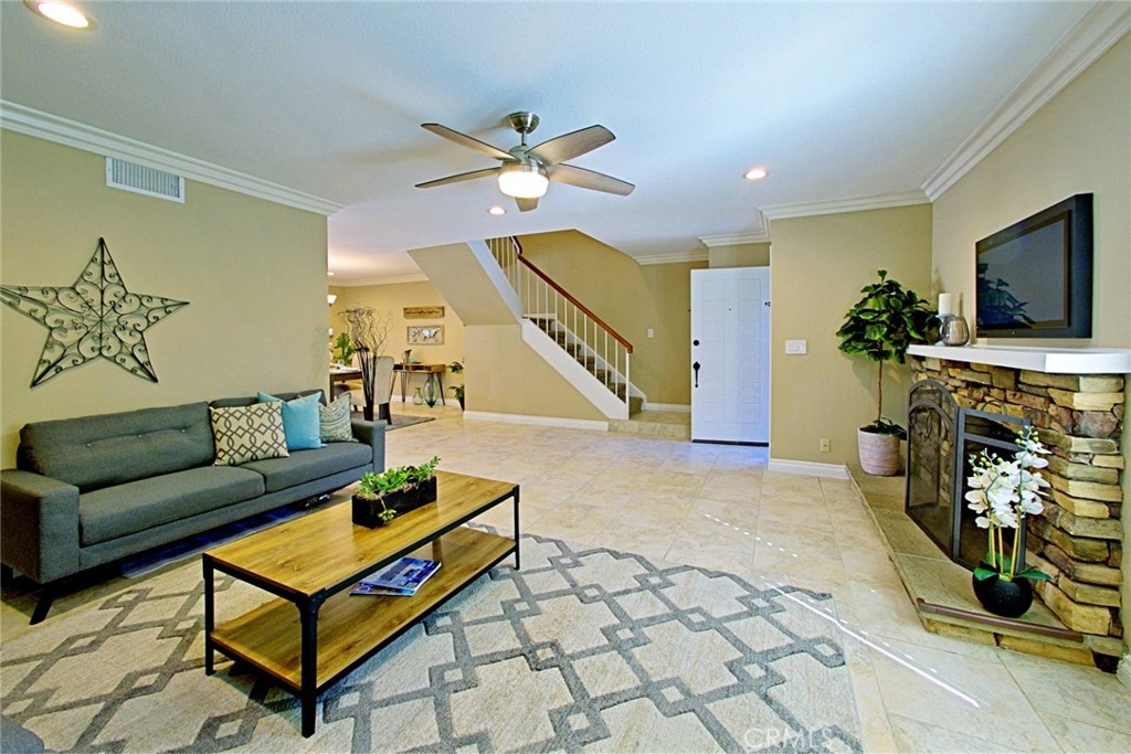 Welcome to this move in ready beautiful highly upgraded unit with BEAUTIFUL VIEWS! This 3 beds, 2.5 baths, and 2 car garage townhome is in a great Irvine location. It’s a bright, well-designed floorplan, and comes with a large backyard with a hardscape. Plantation shutters & dual pane Milgard windows throughout. Flagstone gas fireplace with tons of storage in Living room. Spacious dining room & entry. Home comes with Stainless Steel refrigerator, brand new 4 burner Gas Stove w/built-in oven, large microwave w/exhaust, new dishwasher, white cabinets, granite countertop, and drinking water filtration in the gourmet kitchen, new HVAC system w/Air purification system, recessed lighting throughout the first floor. Water softener in the whole house. Sparkling paned kitchen window/French Doors with sidelights lead to a spacious party-ready patio connected to a detached 2 car large garage with extra storage & laundry area. Crown molding all through downstairs continues to the soaring ceiling of the natural wood stairway to the 2nd floor, granite counter, custom tile, and all new shower doors, hardware, and vanities in upstairs baths. Double door entry leads to a huge master suite with built-in linen closet in master bath and walk-in his/her closet. Two lovely bedrooms with custom closets. Fancy ceiling fans in all 3 bedrooms. Walkable distance to award-winning schools, well-maintained parks and trails, Oak Creek Golf Club and Irvine Valley College. Very near to Hwy I-5 and I-405 and Irvine Spectrum. Walking distance to pool with Jacuzzi, Hoeptner park, Walnut trail, tennis courts, early childhood learning center and community clubhouse. Call or email with additional questions or to schedule an individual showing outside of the planned open house times.