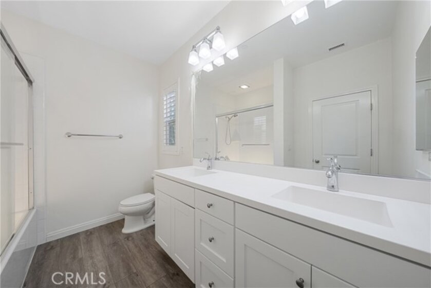 Most Popular floorplan Residence 2 at Jasmine in Irvine’s popular Cypress Village, this bright and airy north east facing end unit home hosts a wide array of new upgrades just did in this month. Wood-look luxury vinyl plank flooring graces the main floor and 2.5 baths, while brand-new designer carpet enhances 3 second-level bedrooms and stairs. the stylish accent TV wall in a cheery great room and Open dining area with backyard access, an island kitchen with upgraded stainless steel KitchenAid appliances, a pantry and granite countertops. Upstairs, a classic tray ceiling distinguishes the luxurious master suite with new upgrade accent wall as well, master room is also appointed with 2 sinks and a spacious walk-in closet. For added convenience, an interior laundry room is located on the upper floor and an attached garage accommodates 2 cars. From its sought-after corner homesite, the residence is walking distance to Cypress Village’s elementary school, multiple parks, trails, a clubhouse, pool, spa, playground, basketball court and sports fields. Shopping centers, recreation, Irvine Spectrum, and major freeways and toll roads are minutes away.