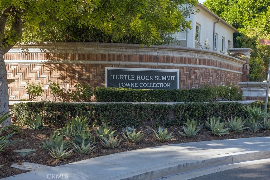 Incredible Value at this New Price! Move to the newest townhome community built in Turtle Rock with sweeping views of the park and nearby hillsides! Rarely on the market, this popular Windsor model offers 3 en-suite bedrooms plus a powder room, a 3-car garage and boasts modern upscale finishes. Situated in a prime location overlooking the serene park, this meticulously maintained home has unobstructed views of the sprawling greens and hillsides from the family, dining and living rooms, back patio and upstairs primary bedroom. A private, gated entry courtyard greets guests with a classic brick walkway and large front porch. Upon entering, you will enjoy two-story-high ceilings and interiors awash with an abundance of natural light. The main living room has a wood-burning fireplace with quartz surrounds and offers the perfect aura of relaxation. The adjoining dining room features a quartz topped wet bar with ample storage and shelving to place all you need to entertain guests. An impressive remodeled kitchen boasts sleek quartz counters with waterfall edges, Kitchen Aid stainless appliances including a newer French door refrigerator, an oversized custom center island with counter seating for 3, fully remodeled soft-close cabinetry with tremendous storage space accented by a sleek custom full backsplash. The kitchen is in between a quaint breakfast nook and the family room accessing the private wrap-around patio. A powder room with accent shelving and a separate laundry room complete the main floor. Enter into the exceptional upstairs primary suite with soaring ceilings, a retreat with a wood-burning fireplace and a private view balcony. The primary bathroom has an oversized skylight, large walk-in closet, double-wide vanity with dual sinks, separate tub, oversized shower and a toilet closet with added storage. The 2 additional en-suite bedrooms each have soaring ceilings and generous closet space. Noteworthy features include beautiful maple engineered wide-plank wood flooring on the first level, plantation shutters and 9’ high ceilings accented by Benjamin Moore Aura interior wall color. Added features are newer Kohler toilets and washer and dryer are included. Nearby community facilities include a pool, Jacuzzi & BBQ's. Nestled in the hills of Turtle Rock, this home is tucked away in a quaint neighborhood of just 77 homes and offers the low HOA dues! Relish the Turtle Rock lifestyle away from the hustle and bustle. Award-winning schools. No Mello Roos.