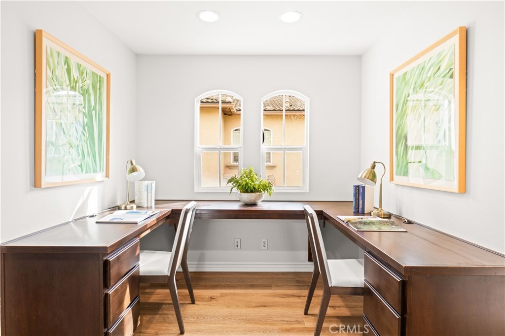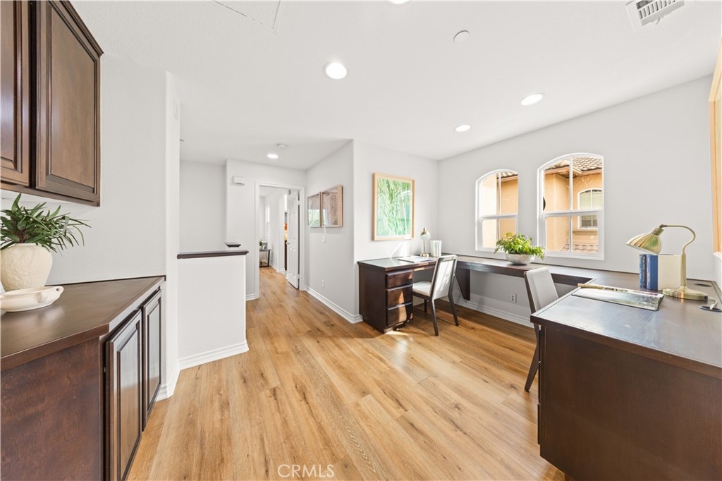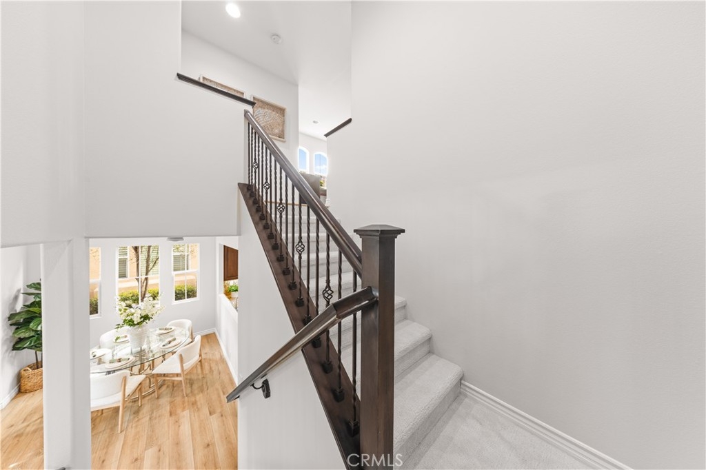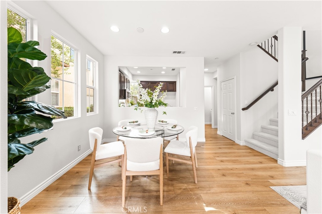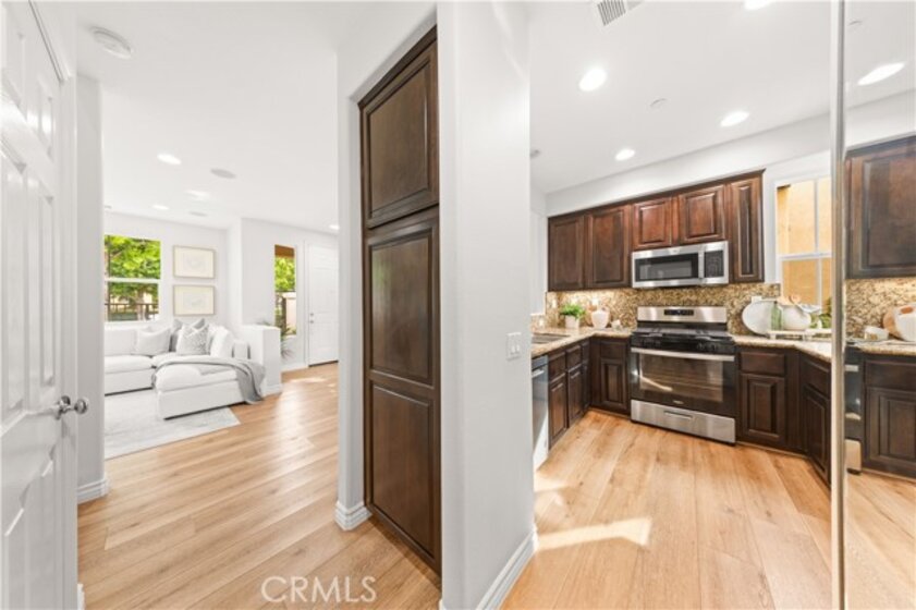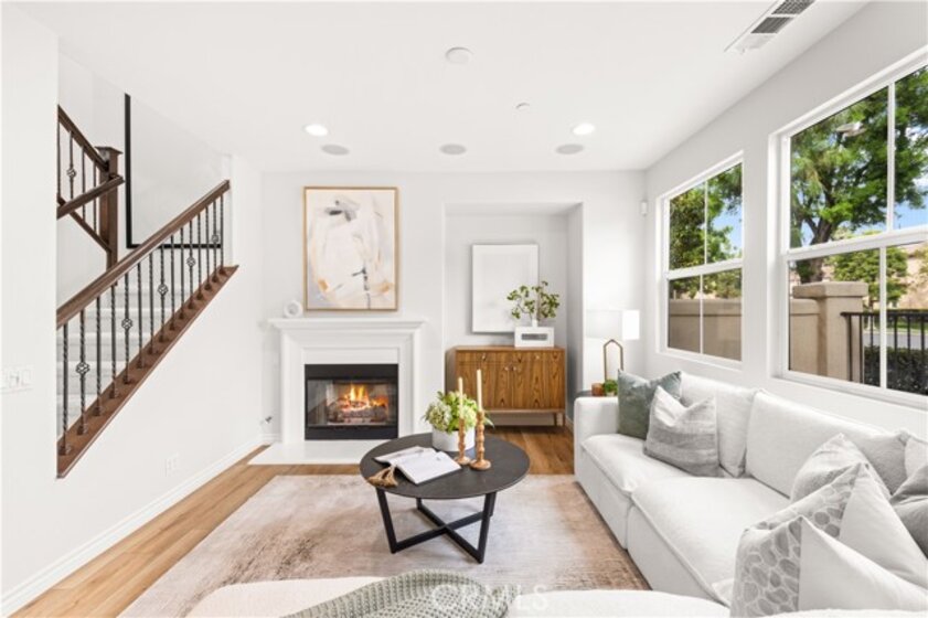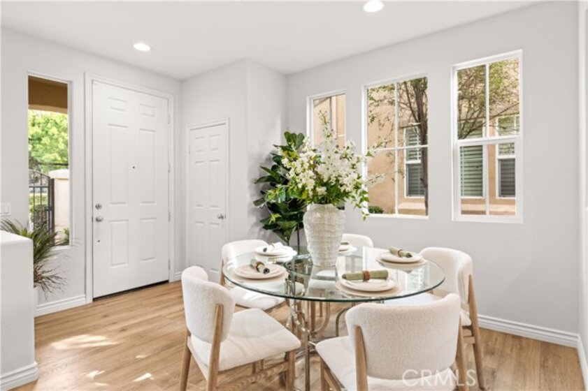 This thoughtfully refreshed home offers a refined balance of comfort, light, and everyday livability within a highly desirable Irvine community. A charming private front courtyard creates a welcoming sense of arrival and provides an ideal outdoor space for morning coffee or evening relaxation, while the home’s open orientation facing the community park and swimming pool brings in pleasant views and a strong connection to the surrounding greenery. Inside, the living spaces feel bright and modern, enhanced by recessed lighting and a cohesive, freshly repainted interior that gives the entire home a clean, move-in-ready feel. The main living and dining areas flow naturally, offering flexibility for both daily living and entertaining. The flooring throughout the home presents a clean, contemporary look that complements the neutral palette and abundant natural light. The kitchen is practical and well laid out, featuring generous counter space, ample cabinetry, and an efficient design that supports both casual meals and more involved cooking. The newly replaced carpet on the staircase adds comfort and warmth while creating a soft transition between levels. Upstairs, the bedrooms are well proportioned and filled with natural light, offering calm, comfortable retreats. A standout feature is the second-floor loft, a versatile space ideal for a home office, study area, or learning zone—perfectly suited for today’s work-from-home and academic needs. The home also benefits from added privacy and brightness thanks to its favorable positioning within the community. Located within walking distance to a highly rated 10/10 high school, and just steps from parks, the pool, and community amenities, this home delivers exceptional convenience in a neighborhood known for its safety and quality of life. With its inviting outdoor space, thoughtful updates, flexible layout, and prime location, this residence offers a warm, polished living experience tailored to modern Irvine living.