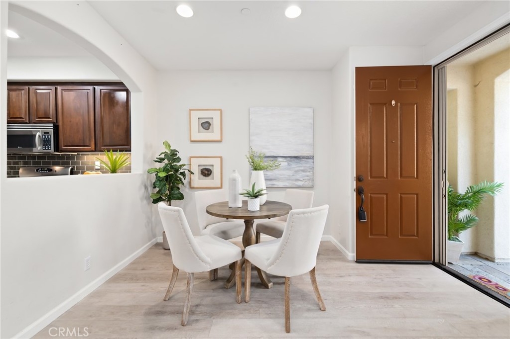 This is it! Located in the sought-after Trailing Vine community, this bright and cheery townhome is ready and waiting for you! 94 New Season features a spacious, open floor plan that includes 3 bedrooms, 2.5 baths, a large two car attached garage, and a loft for a playroom or office space. This townhome has been tastefully updated with luxury vinyl plank flooring, recessed lighting, ceiling fans and a neutral color palette. The charming kitchen has white quartz counters, a sweet subway tile backsplash, stainless steel appliances, and even includes the refrigerator. The tranquil master suite has built-in cabinetry and a walk-in closet with an organizer. It also has an en suite bathroom with double sinks and a separate toilet room. This cozy home is located in a private part of the community, surrounded by mature landscaping and beautiful pine trees - it even has a private, gated front patio. The laundry room is conveniently located upstairs and includes a washing machine and dryer. Central air too. Relax and enjoy the resort-like community pool, spa, grills and children's playground. Easy access to freeways, Tustin Marketplace shopping/dining, Costco, Regional Parks, the Post Office and nature preserves. Top Rated Schools in Tustin Unified School District include Hicks Canyon Elementary, Orchard Hills Middle School and Beckman High.