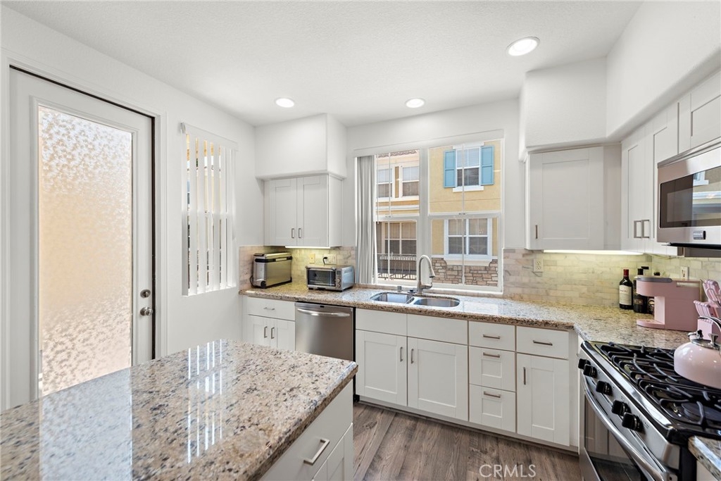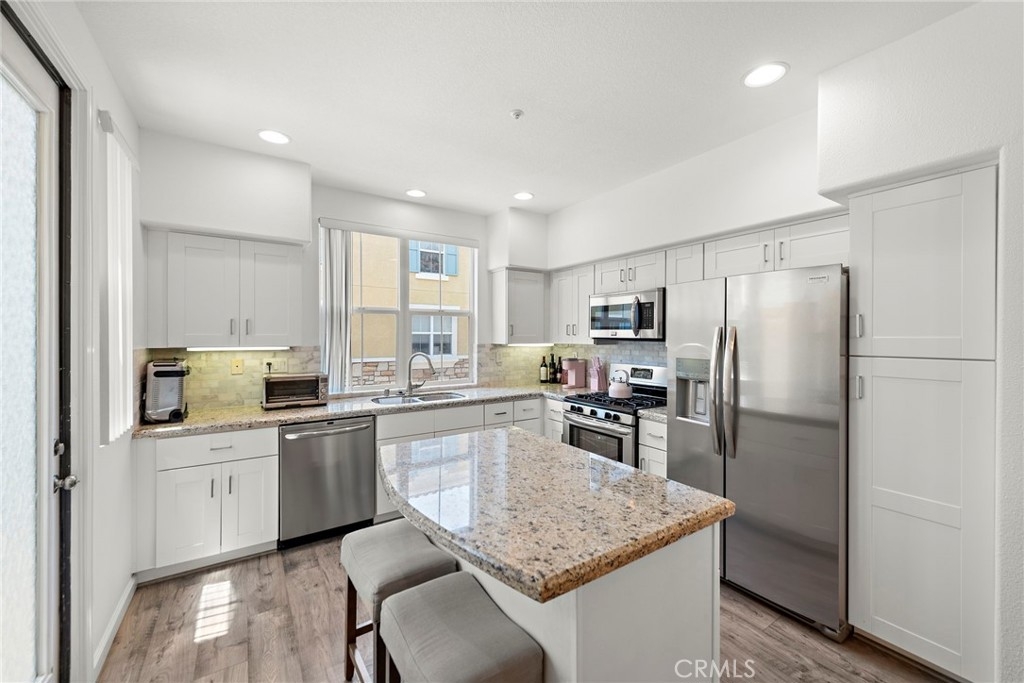 Welcome home to the prestigious 24-hour guard-gated, resort-like community of Northpark! Nestled within Northpark is Terra Bella, a quaint tree lined collection of Tuscany style condominium/townhomes. We are proud to offer 206 Terra Bella with its private location and popular 2 bedroom, 2 1/2 bath open floorplan. Step inside to soaring ceilings and an open-concept layout that feels bright and inviting. Recently renovated with contemporary influences including a kitchen island, white shaker cabinetry, granite countertops, modern tile backsplash and luxury laminate flooring this home is TURNKEY ready! Stainless steel appliances anchor the beautiful kitchen with balcony access and the master suite includes dual vanities and walk-in closet. The secondary bedroom is also impressively sized with a large closet, ideal for guests or a home office. A two car tandem garage is connected via dedicated hallway to your home. HOA amenities include community swimming pool, spa, tennis courts, picnic areas, and spacious clubhouse. Resort style living and prime location within Irvine! Close to award winning schools, shopping, restaurants, movies and recreational activities including walking trails and bike paths. This is the perfect blend of modern upgrades, thoughtful design, and community amenities in a location you'll love to call home. Don’t miss the opportunity to live in one of the area's most sought-after communities! Come and take a tour today!