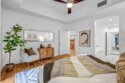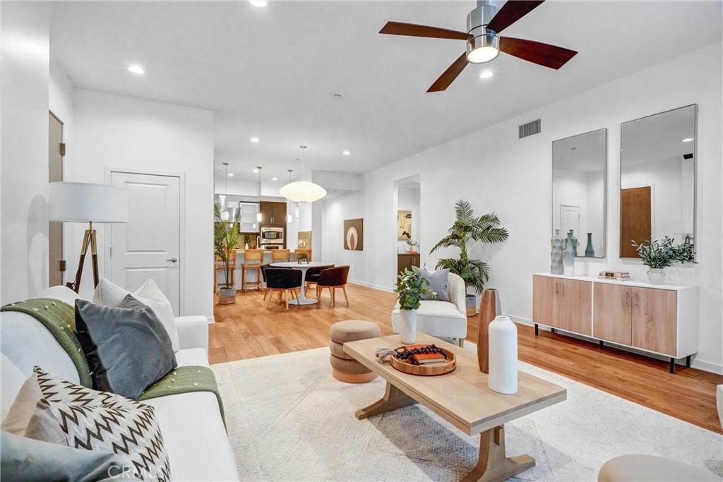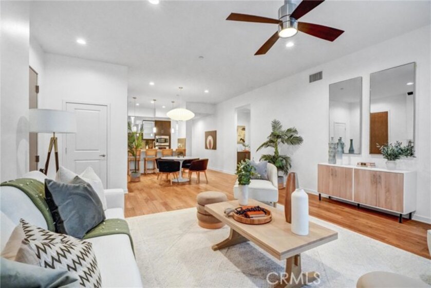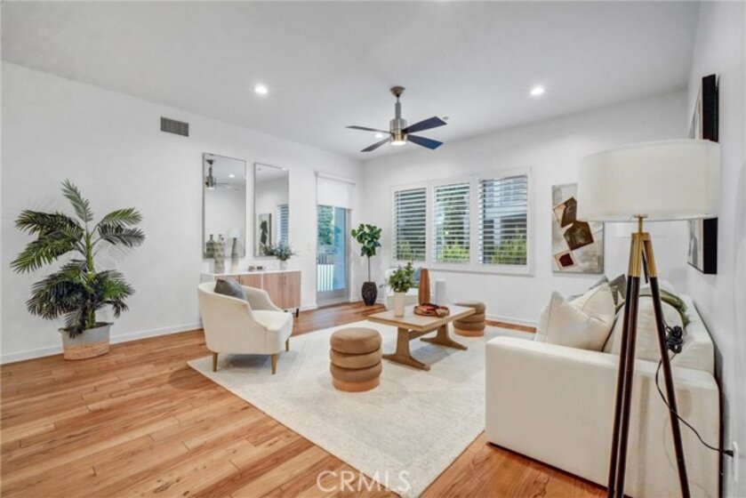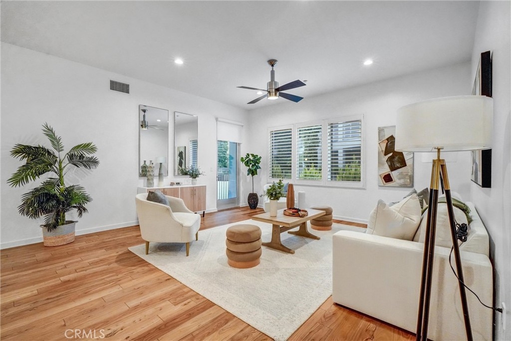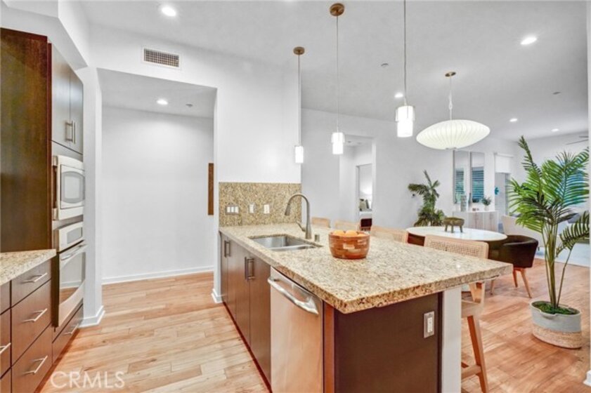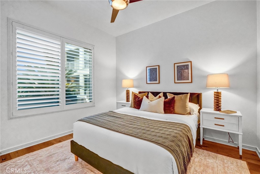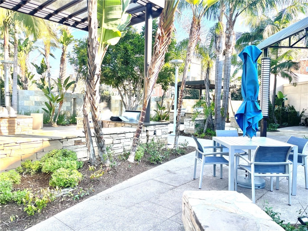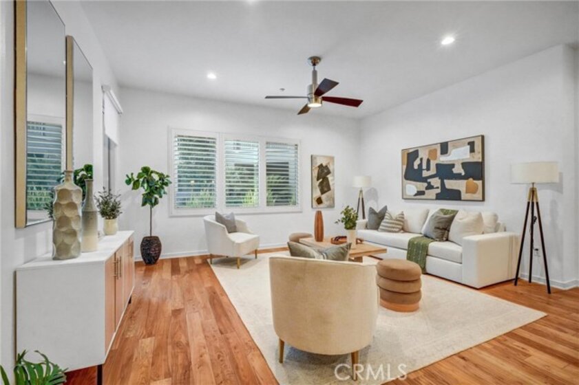 Prestigious Lifestyle of Belvedere Residence within Central Park West, designed w luxury & convenience in mind. This nicely single Level Condo located on the 1st floor w high-ceilings, recessed lighting, wood floors, plantation shutters through-out, Casablanca ceiling fans, laundry area, & ample storage. Master suite w direct access to patio. Master bath includes dual sinks, granite countertops, separate tub, shower w glass enclosure & walk-in closet w organizers. Huge full guest bathroom. Gourmet kitchen opens to dining & living room. It offers center island w breakfast bar, granite counters, stainless steel appliances, modernly designed cabinets w glass doors, & walk-in pantry. Open floor plan offers perfect space for entertaining. Directly across the street the resort like amenities, gym & fitness facilities, saline pool & spa, community event center, outdoor sitting areas w fireplaces for social gatherings, guest lounges w bars, barbecue areas, & much more. Amenities also include tot lot, Pickleball & basketball Courts, & pet waste station. Inviting lobby entrance, access-controlled building, & two assigned parking spaces in the gated subterranean parking structure 124/125, & a private storage. Live, work & play in what has become the hottest lifestyle location in OC. Centralized location, off of I-405 to Jamboree, only minutes away from John Wayne Airport, UC Irvine, South Coast Plaza, Fashion Island, 73 toll road, & Ocean!