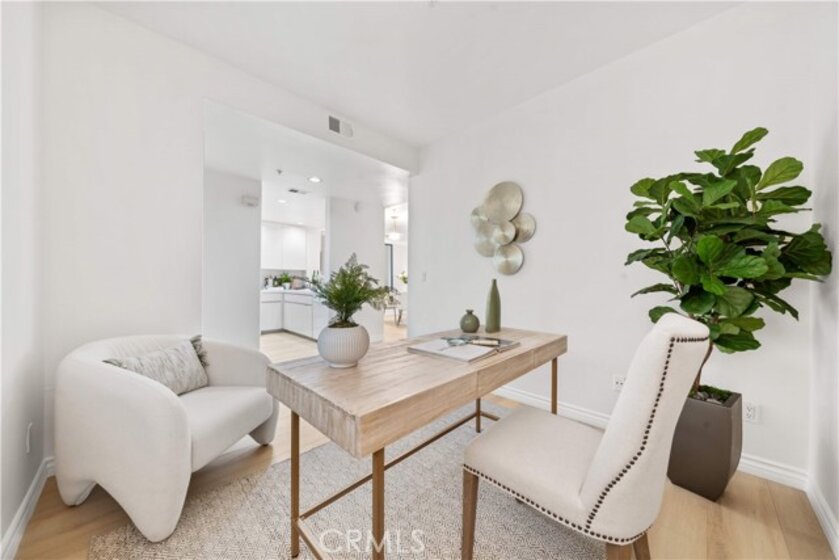 Located within a resort-style, gated community with guarded access and 24-hour security, this beautifully designed residence offers a refined and low-maintenance lifestyle in the heart of Irvine. Residents enjoy access to a clubhouse, fitness center, pool, and spa, while HOA dues include water, trash, and gas, providing exceptional value and everyday convenience. The thoughtfully arranged floor plan features two bedrooms and two bathrooms, offering an ideal balance of comfort and privacy. Upon entry, a flexible office or den area creates a perfect space for working from home or study. The home flows seamlessly into a well-appointed kitchen and an inviting living area, ideal for both daily living and entertaining. A private balcony extends the living space and overlooks peaceful, tree-lined views, adding a sense of tranquility and privacy rarely found in central locations.The home also includes two assigned parking spaces, enhancing both convenience and everyday functionality. Ideally situated near major freeways, John Wayne Airport, and Irvine’s premier shopping, dining, and business centers, this residence presents an excellent opportunity for owner-occupants or investors seeking security, lifestyle amenities, and long-term value in one of Irvine’s most desirable communities.