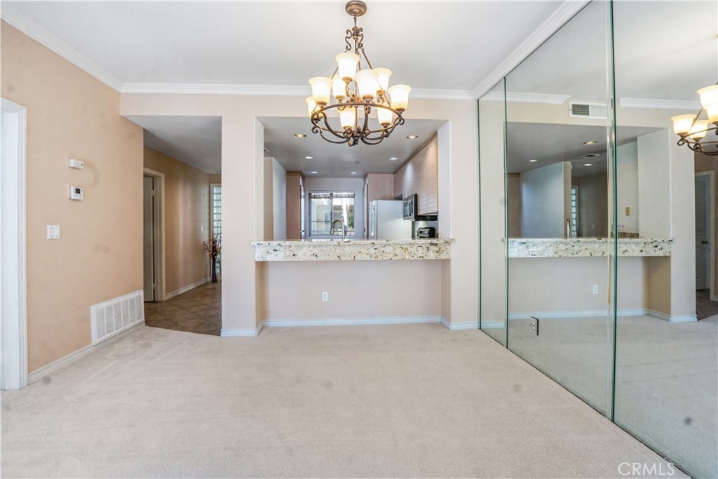 You really need to see this condo!! New Swiss Coffee paint in Bedrooms, Living room and Entry. This 2 bedroom, 2 bath condo is one of the largest floor plans in the" Metropolitan" and the best deal in the complex. It is a guard gated community with resort style living and lushly landscaped grounds. The 9' ceilings in the Living room, Dining room and Bedrooms make it feel much larger. The kitchen has a Refrigerator, Dishwasher, Stove, Microwave, Washer and Dryer included. The kitchen also has plenty of cabinets, Granite countertops and backsplash, and a raised breakfast bar, A Stainless Steel double sink, Recessed lights and Tile flooring. The nice sized Living Room has a gas fireplace with Marble surround, Tall windows and door to the oversized balcony give it plenty of light. The living room is open to the dining room with a mirrored wall and fan. The Primary Bedroom has access to the balcony and 2 closets. The Primary bathroom has a separate shower and tub, Granite counters with double sinks. The Guest bedroom has a walk-in large walkin closet. The Guest bathroom has a Tub/Shower combo. There is new plush carpet in the Living room, Dining room and Bedrooms, and Tile flooring in kitchen and bathrooms. Relax and bbq on your balcony and soak in the view of the pool and lush lanscaping. The complex has a beautiful salt water Pool, A Spa and Gym. There is also a Clubhouse that can be rented out. 2 side by side parking spots #110 and #111 close to the levator and plenty of guest parking. Also a Lushly landscaped walking path around the complex, great for the doggies. Minutes to Santa Ana Airport, Restaurants, 73, 405 and 55 Frwys, and just a a short drive to shopping and the Beach. HOA fee includes water, trash and sewer. Looks good in the pics but looks better in person. This is an amazing opportunity to live in a beautiful complex!!!