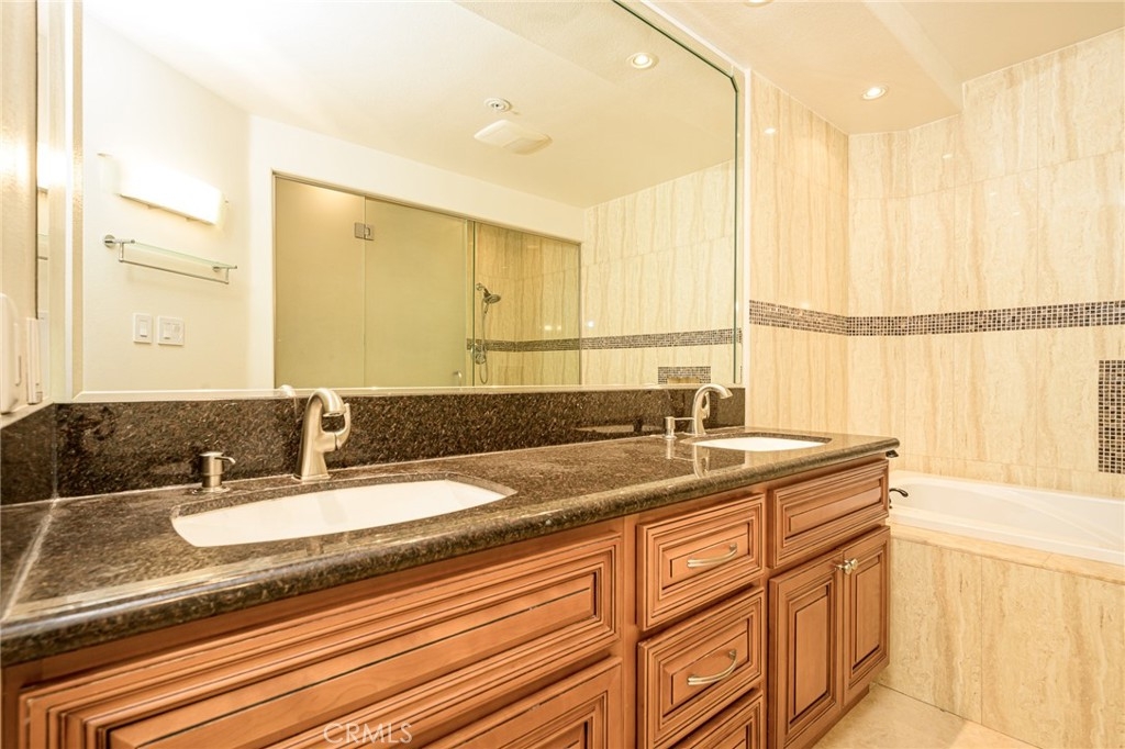Resort style living at The Metropolitan. HIGHLY UPGRADED very large one bedroom plus den that can be used as an office or second bedroom. Beautiful newer carpeting in living room. Newer recessed lighting throughout and a marble cased gas fireplace . Office/den/second bedroom features recessed lighting with dimmer, beautiful stone flooring, and custom window shades. Kitchen features newer granite countertops, beautiful custom cabinetry throughout, reconfigured pantry and washer/dryer room, stainless steel electric oven and range, dishwasher, washer, dryer and refrigerator all included in sale. 9-foot ceilings throughout. Bathroom features dual vanity with stone countertops and custom cabinets with lots of storage, private toilet & walk in shower with custom glass doors adjacent to large stone cased soaking bathtub. Bedroom has spacious walk-in closet, recessed lighting, custom draperies and newer carpeting. Patio is very large with lush tropical landscape views. This unit has 2 side by side parking spaces #190 & 191 which is rare for this model. Brand new HVAC system. Close to South Coast Plaza & Fashion Island/ Newport Beach, all the best Orange County has to offer is at your doorstep. Within a few minutes of JW Airport & 3 major freeways this ideal location is for the most cosmopolitan of residents. Features pool, spa, gym & guarded gate. Water, hot water trash, and gas are all included in HOA dues. Great opportunity here! Hurry!
