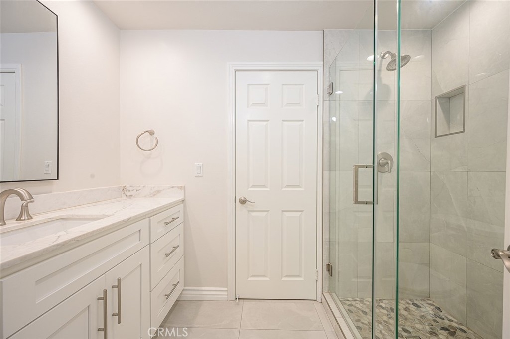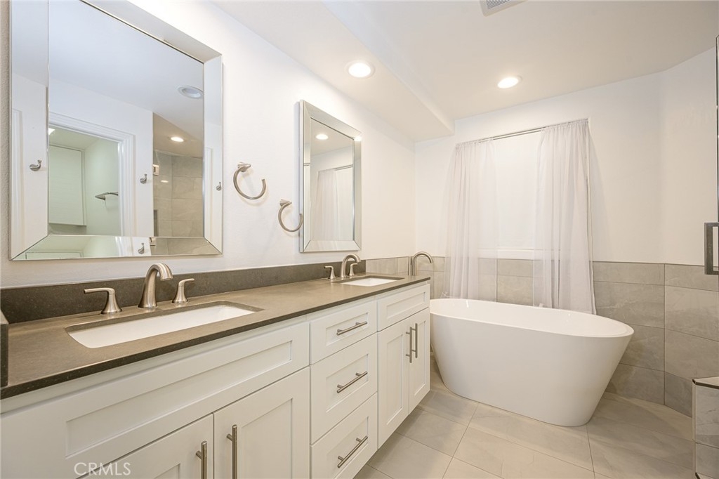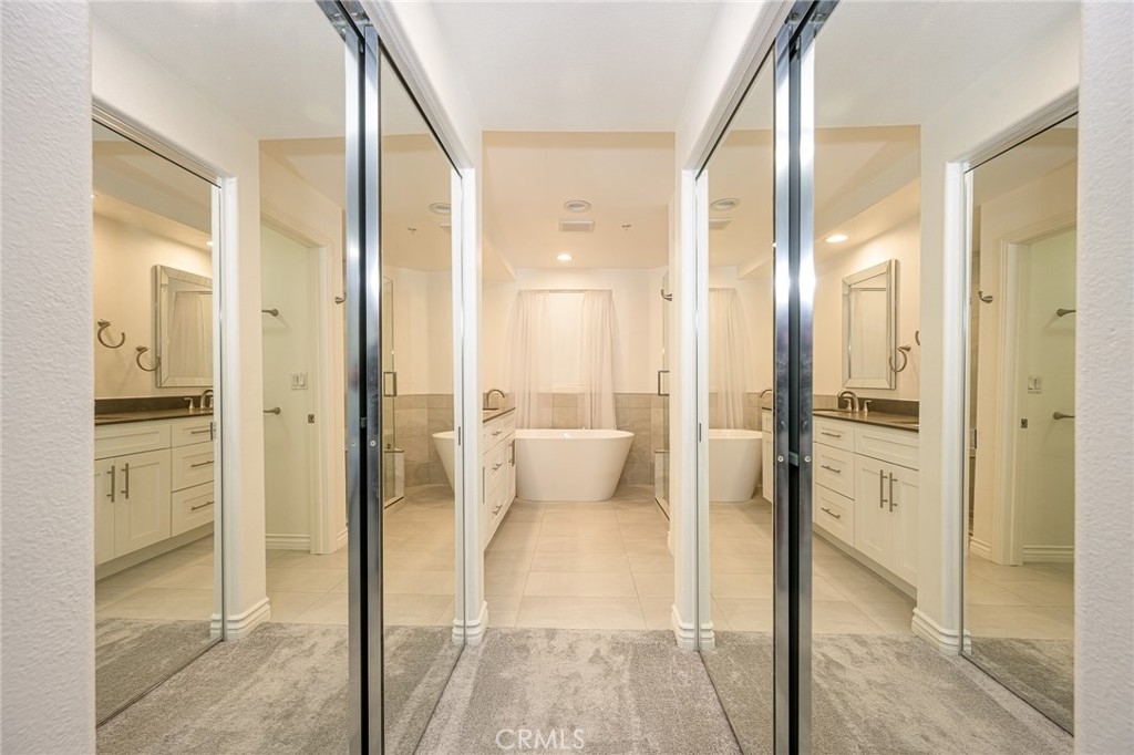 Resort style living at the beautiful Metropolitan! This very sought after unit has a rare storage closet on balcony. Highly upgraded inside, this beautifully condo includes beautiful high quality stone flooring in entry, kitchen and bathrooms, extra custom-built cabinetry added in kitchen and granite countertops, lush new carpeting in living room and bedrooms. This unique condo has two bedrooms, each containing highly upgraded bathrooms and 3 huge closets. Primary bathroom has all new expanded walk-in shower and free-standing soaking tub. All new stone counters and sinks. Guest bathroom also has new walk-in shower with stone and marble finishings. New cabinets and stone counters as well. There are 9-foot ceilings, crown and base moldings and a gas starter fireplace with a marble mantle. The upgraded kitchen includes stainless steel appliances, new refrigerator and washer and dryer all included.. Community amenities feature a resort-style pool and spa, gym, guard and an exclusive clubhouse. The Metropolitan is close to Fashion Island, John Wayne Airport, UC Irvine, and South Coast Plaza. Enjoy prime access to the I-405, 55, and 73 freeways. Hurry, this one won’t last!