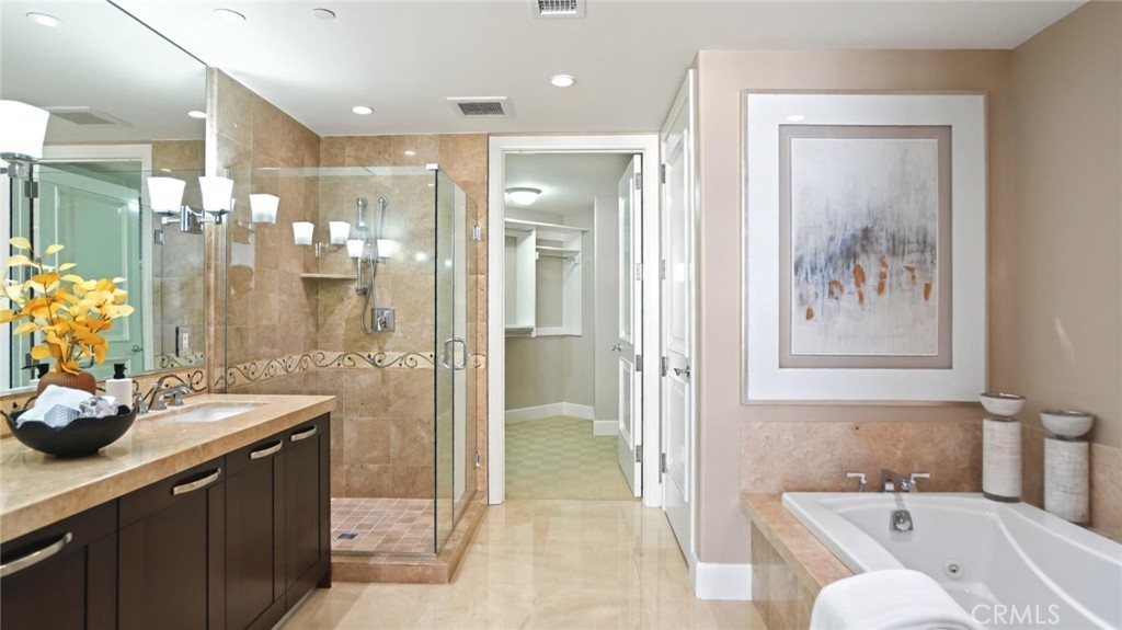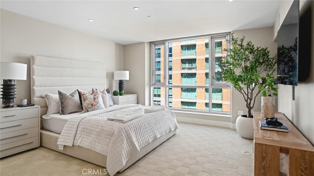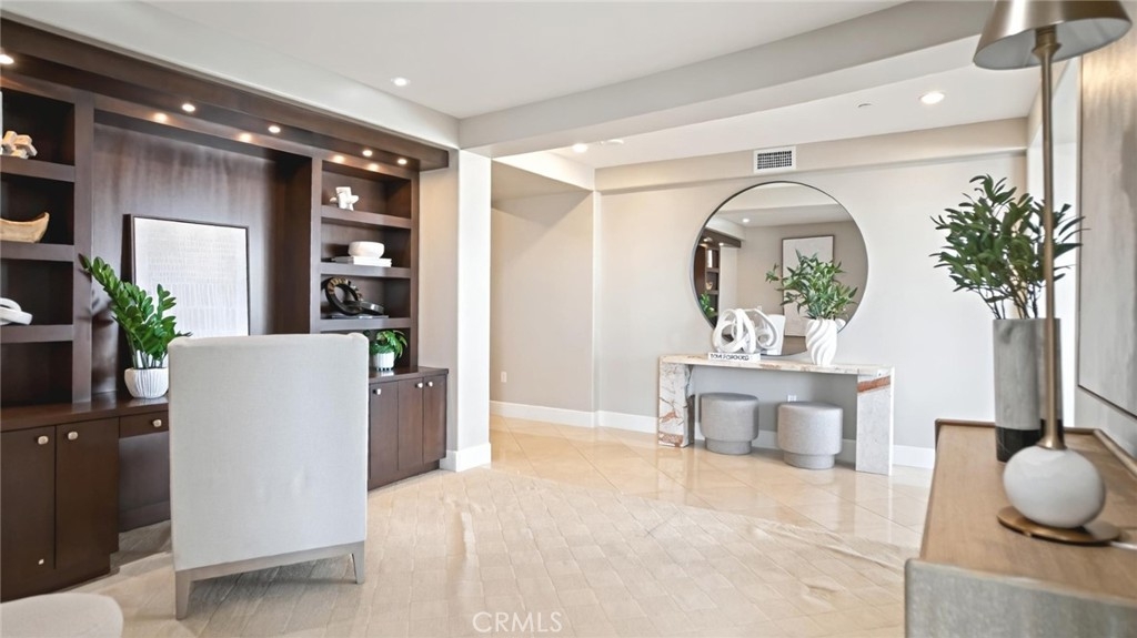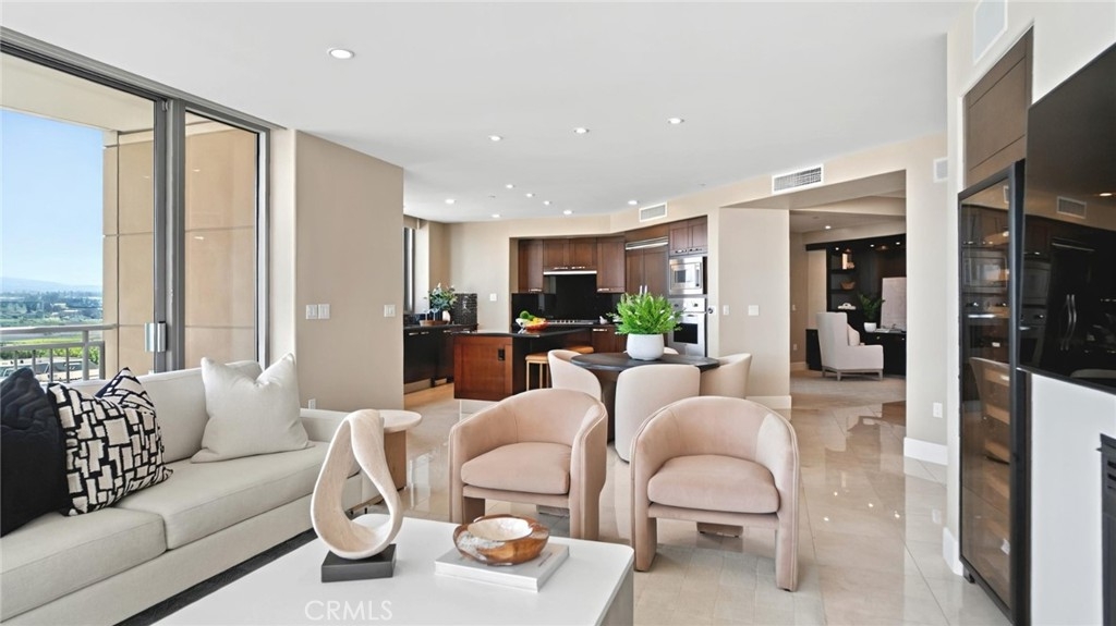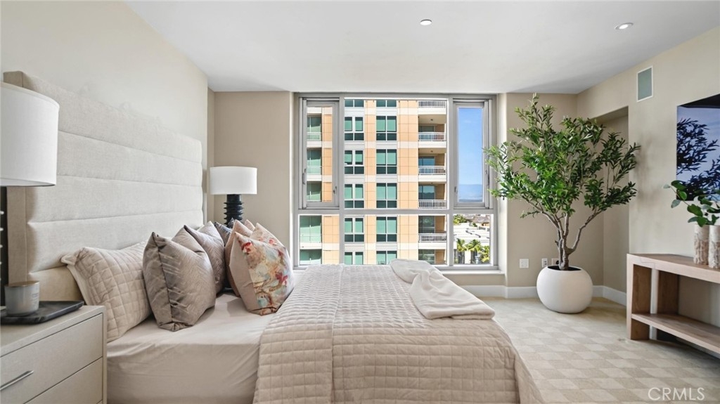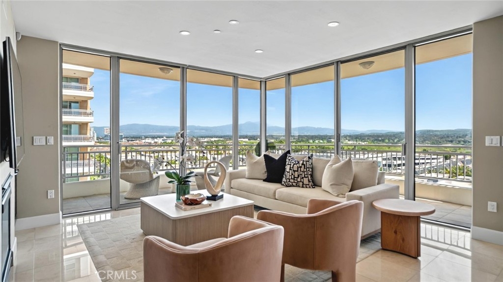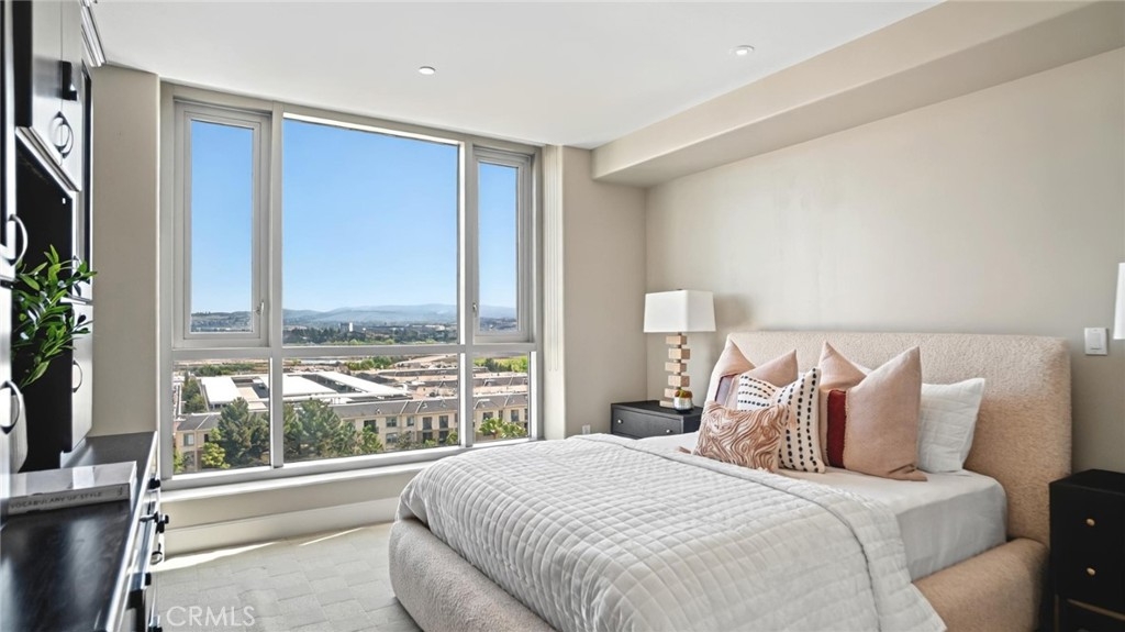 Elevated above the heart of Irvine’s prestigious Plaza community, this meticulously maintained corner residence offers the perfect fusion of luxury, privacy, and panoramic views. Spanning over 2,050 square feet, this highly sought-after floor plan features 2 bedrooms, a versatile den, and a unique corner location that sets it apart from the rest—positioned away from main road traffic while offering interior-facing views that enhance both tranquility and exclusivity. Thoughtfully designed for effortless living and entertaining, the open-concept layout seamlessly connects the formal living and dining areas to a modern kitchen outfitted with premium appliances and contemporary finishes. Expansive floor-to-ceiling windows flood the space with natural light, framing captivating cityscape vistas and lush courtyard scenes from nearly every angle. Retreat to the spacious primary suite, complete with a spa-inspired bathroom and generous walk-in closet, while the secondary bedroom and den provide ample flexibility for guests or a home office setup. Sophisticated yet comfortable, this residence also benefits from the renowned amenities at The Plaza—concierge services, state-of-the-art fitness center, pool and spa, all within close proximity to Irvine’s finest shopping, dining, and entertainment.