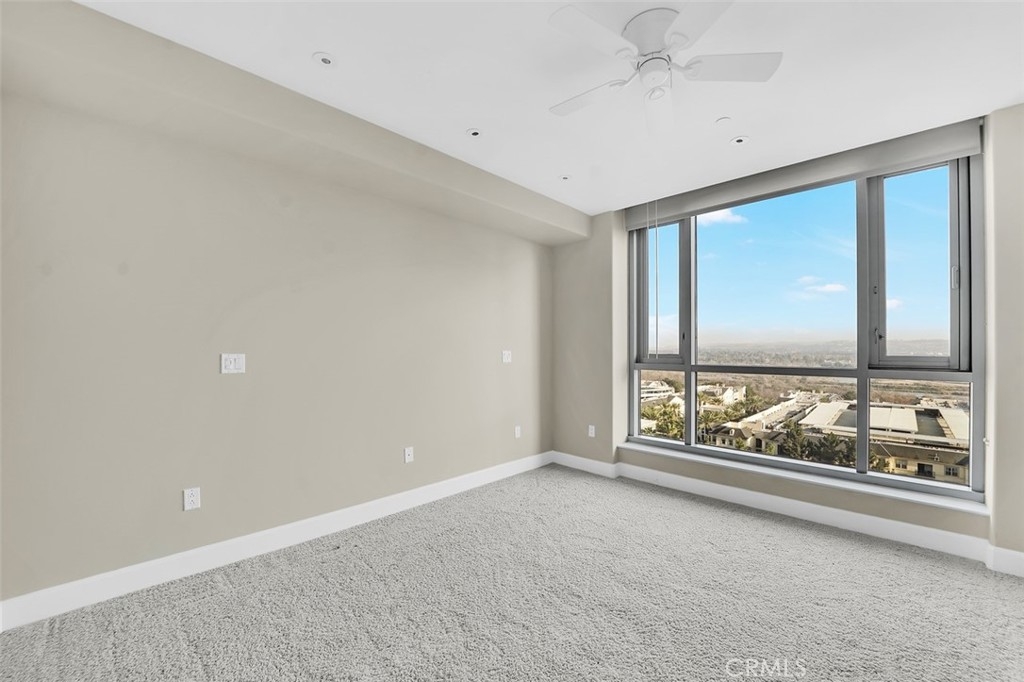 luxurious single-level penthouse-style home located on the 12th floor of Plaza Irvine, featuring remarkable 180-degree views with a South-facing orientation. The 2,000 sq ft modern residence offers sweeping sit-down city light views from Saddleback Mountain, Irvine Spectrum, San Joaquin Wetlands, Turtle Rock, and UCI in the East to sunset and coastal views of Newport Beach, Fashion Island, Catalina Island, and Palos Verdes Peninsula in the West. The home includes high-end upgrades such as marble flooring, granite countertops, Viking appliances, Lutron automated shades and lighting, a large master suite with coastal views, a walk-in closet, walk-in shower, spa tub, water closet, dual vanity, a full-size laundry room with built-in cabinetry, and a guest room with an ensuite bath. Additional features include convenient side-by-side parking and an oversized storage unit. The community offers luxurious amenities, including concierge service, a 5,000 sq ft fitness center with a yoga room, two club rooms, two sports rooms, two conference centers, a business center, and an impressive guest lobby. The location borders Newport Beach and Irvine, providing easy access to world-famous beaches, world-class shopping, and John Wayne Airport.