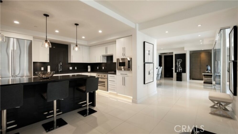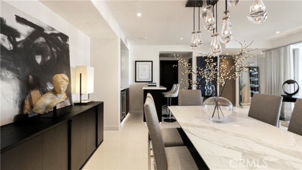 Welcome to 8085 Scholarship, a truly rare offering at The Plaza in Irvine. This extensively reimagined contemporary residence is the result of a tasteful combination of two units into one expansive, single level showpiece, creating a scale and layout seldom available in luxury high rise living. Fully gut renovated with a refined, contemporary design aesthetic, the home was rebuilt with meticulous detail. Brand new appliances, cabinetry, sinks, toilets, upgraded plumbing fixtures, and curated finishes throughout deliver a cohesive, designer environment that is completely turnkey. Clean architectural lines, beautiful white stone flooring, and walls of glass enhance the open concept layout, filling the residence with natural light while offering seamless flow for both elevated entertaining and comfortable daily living. The thoughtfully designed floor plan features two spacious primary suites, each serving as a private retreat with generous walk in closets and spa inspired baths appointed with premium materials and contemporary detailing. In addition, a dedicated office or primary retreat provides flexibility for remote work, a lounge, or fitness space. Two powder rooms add convenience for guests. A formal dining room introduces a sense of occasion, while a sophisticated bar area creates the perfect setting for hosting. The chef’s kitchen anchors the main living space with top tier appliances, sleek stone countertops, and a greatly sized island that serves as both focal point and gathering hub. Practical luxuries further distinguish this offering, including four side by side parking spaces, an exceptional rarity within The Plaza, along with two private storage units for added convenience. Residents enjoy resort caliber amenities including 24/7 concierge and security, a state of the art fitness center, resident lounge, conference facilities, billiards room, outdoor terraces, and a pool, spa, and steam room, all moments from premier dining, shopping, world class beaches, and John Wayne Airport. 8085 Scholarship presents a one of a kind opportunity to own one of the most distinctive and fully transformed residences within The Plaza.