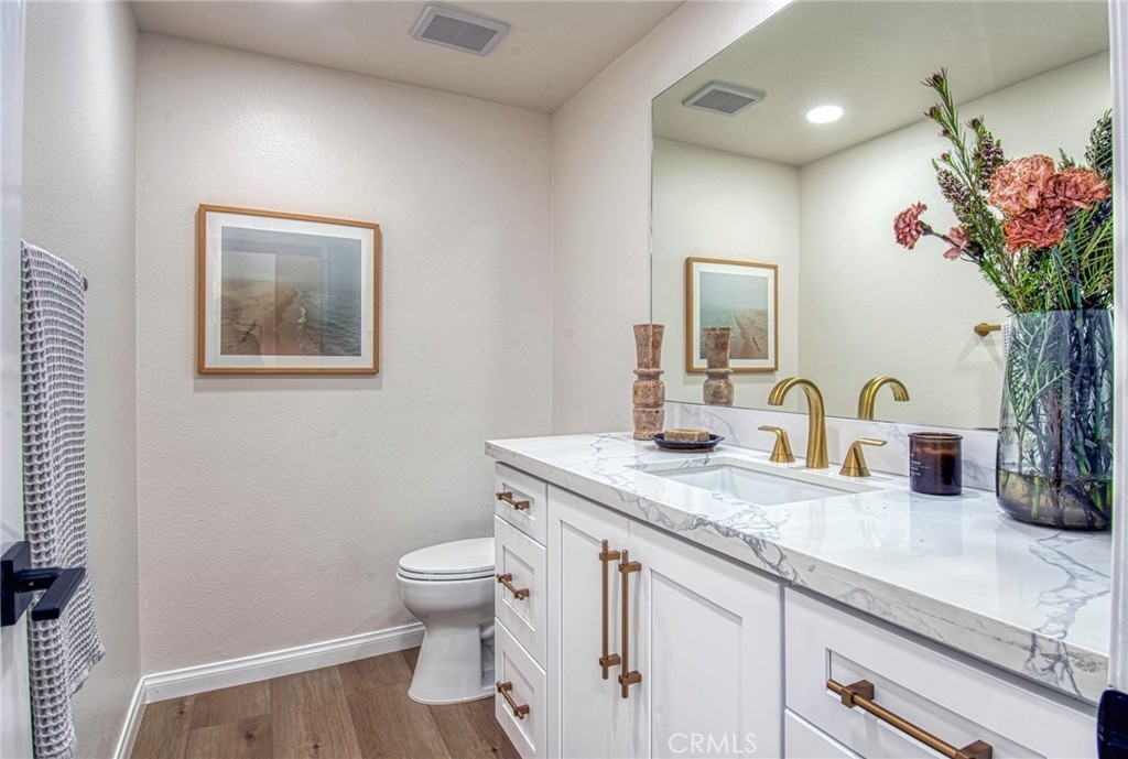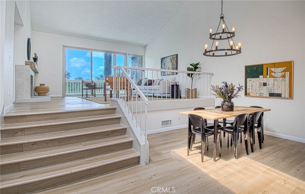 Rare Turtle Rock home located within the desirable Turtle Rock Vista community. This stunning home boasts three bedrooms and two and half bathrooms with an office desirable layout and open floor plan. From the double door front entry there is access to the dining area, living room and kitchen. The home provides for a private office that can also double as a fourth bedroom. The residence offers spacious deck accessibility from both the living room and master bedroom. Abundant windows, skylights, and vaulted ceilings infuse the space with natural light, creating an inviting ambiance. The home showcases upgrades such as renovated bathrooms, new appliances, recessed lighting, and new flooring. A striking marble fireplace graces the living room, adding a touch of elegance. Conveniently situated upstairs, the master bedroom provides vaulted ceilings, a large bathroom with a Roman Tub walk in shower and large walk in closet. The bottom floor bonus room has a bedroom on either side and a full bathroom. The rear patio provides a tranquil spot to enjoy the sunset and easy access to the adjacent pickle ball court and pool and spa facilities. There is an oversized garage with built-in ample storage. Residents have the privilege of attending renowned Irvine Schools, including Turtle Rock Elementary, Rancho San Joaquin Middle, and University High. The property is in walking distance to UCI, Mason Park, shopping centers, and more
