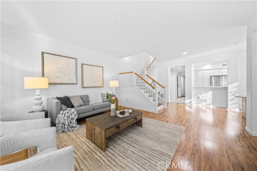 Amazing end-unit 3-bedroom, 2.5-bath townhouse with an attached 2-car garage, located in the prestigious gated community of Northwood Pointe, Irvine. Within walking distance to top-rated Canyon View Elementary and Northwood High School, this home perfectly blends comfort, convenience, and sophistication. The inviting front entry leads into bright, open living spaces with beautiful laminate floors throughout, a cozy fireplace, recessed lighting, and plantation shutters that elevate the home’s elegant character. The spacious eat-in kitchen features ample cabinetry, a brand-new range and microwave, and seamlessly connects to the south-facing living and dining areas—filled with natural light and refreshing airflow. Upstairs, the primary suite offers a generous retreat with a walk-in closet, and a luxurious bathroom with a separate soaking tub and walk-in shower. Two secondary bedrooms are well-sized and share a stylish hallway bath, while the upstairs laundry room adds everyday convenience. Enjoy resort-style amenities including a pool, spa, kiddie pool, and BBQ area within the community, plus access to playgrounds, tennis courts, and volleyball courts in the master-planned Northwood Pointe. Conveniently close to parks, hiking trails, shopping centers, restaurants, The Market Place, and major freeways (I-5 and 261 Toll Road), this home offers the ultimate Irvine lifestyle—where top-tier education, gated serenity, and modern comfort meet.