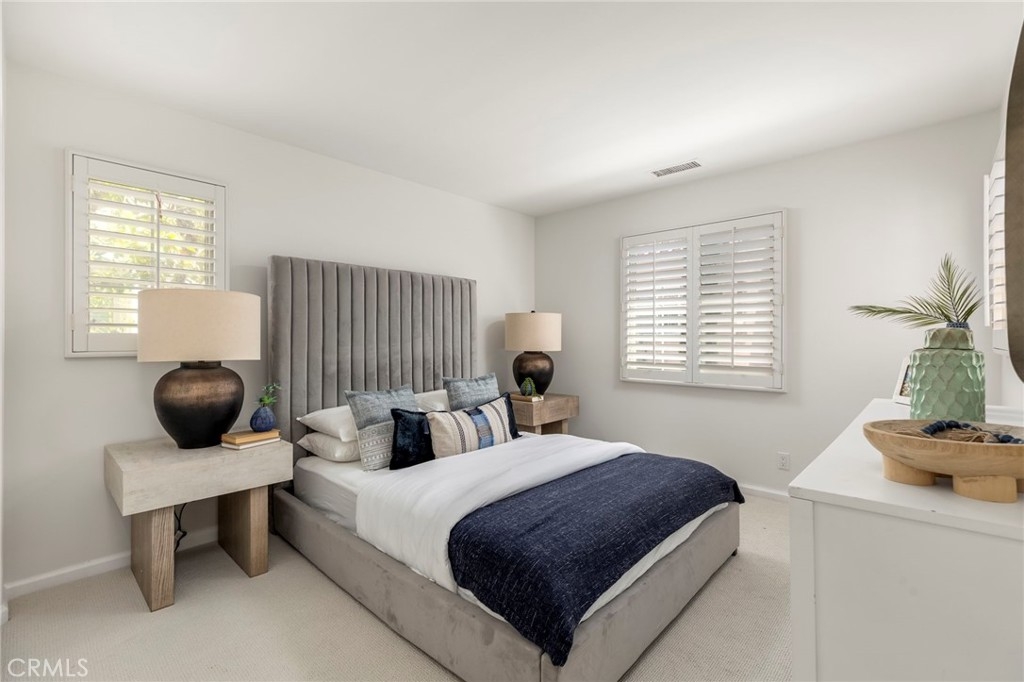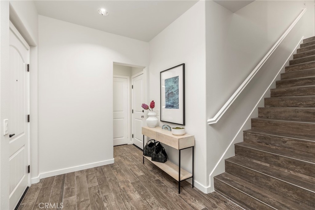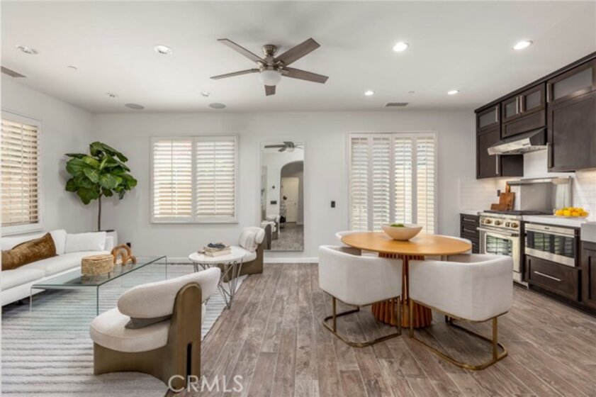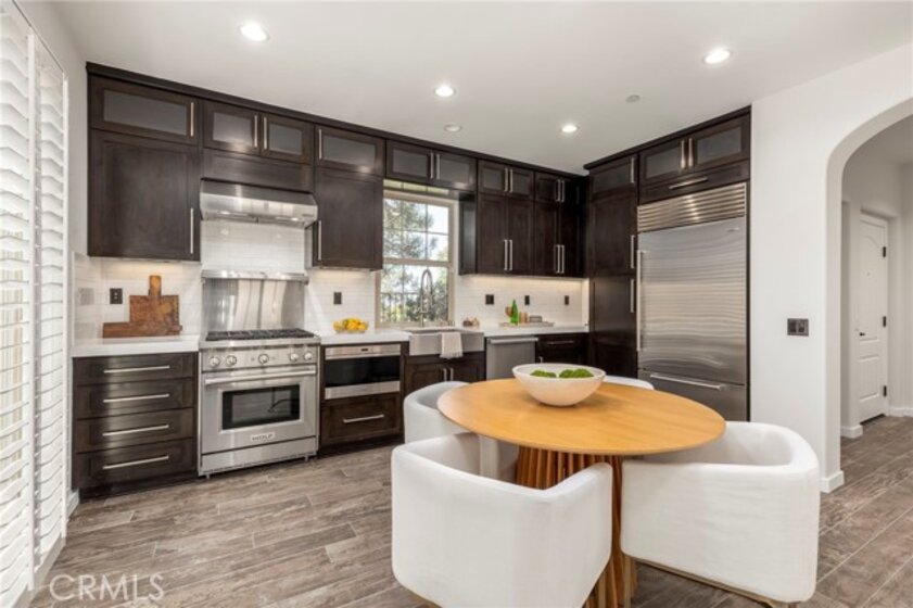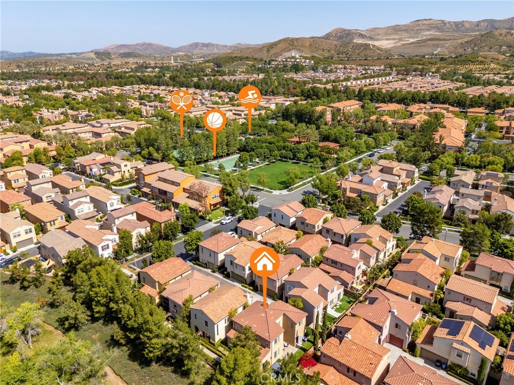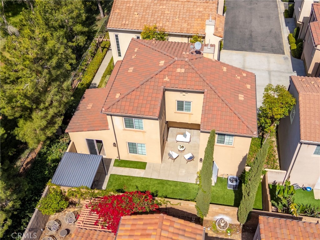 Spectacular Home..Nestled at the end of a serene cul-de-sac, 52 Scarlet Bloom is a stunning detached residence offering the perfect blend of modern convenience and natural tranquility. Surrounded by expansive views of pristine landscapes and open skies, this home is a true sanctuary that feels worlds away, yet remains wonderfully connected. Step inside to an open-concept floor plan bathed in natural light, where every detail has been thoughtfully curated. Elegant wood-grain tile flooring flows seamlessly through the main living areas, complemented by plantation shutters and recessed lighting that enhance the home’s timeless charm. The living room, with its adjacent outdoor spaces and built-in speakers, is an ideal hub for both quiet relaxation and lively entertaining. The chef’s kitchen is a showstopper, boasting custom espresso cabinetry with soft-close features, pull-out pantry drawers, and top-tier stainless steel appliances, including a built-in Sub-Zero refrigerator and Wolf range. Quartz countertops, a new subway tile backsplash, and a farmhouse sink overlooking uninterrupted nature views make this space as functional as it is beautiful. With effortless indoor-outdoor flow, the adjoining dining area is perfect for hosting al fresco dinners or casual brunches. Outside, two distinct entertaining areas invite you to savor the Southern California lifestyle. Whether you're enjoying a morning coffee on the private patio, playing on the low-maintenance artificial turf, or picking fresh citrus from your own backyard tree, this outdoor haven is designed for ultimate enjoyment. Retreat upstairs to the sunlit primary suite, a private oasis with multiple windows, plantation shutters, and a spacious walk-in closet. A separate dressing area with custom built-ins adds a touch of luxury, while recessed lighting and built-in speakers complete the tranquil ambiance. Additional features include new Berber carpet, epoxy-finished garage floors, and a Tesla charging station, ensuring modern ease meets everyday comfort. Situated in a peaceful, nature-rich setting, this home offers the rare combination of privacy, style, and convenience.