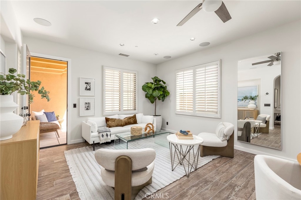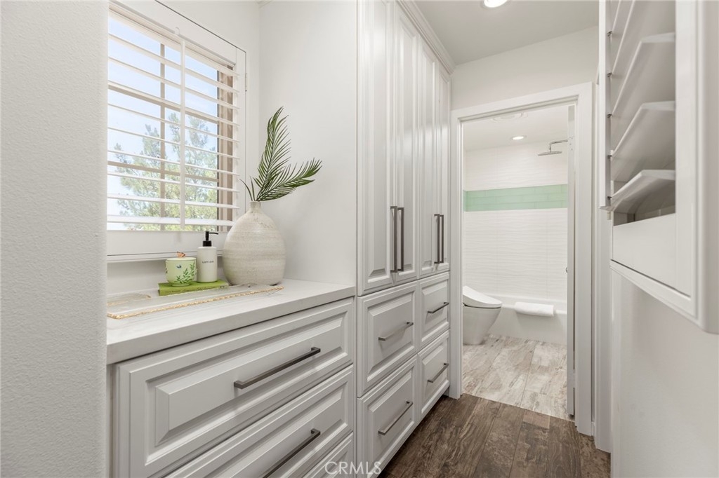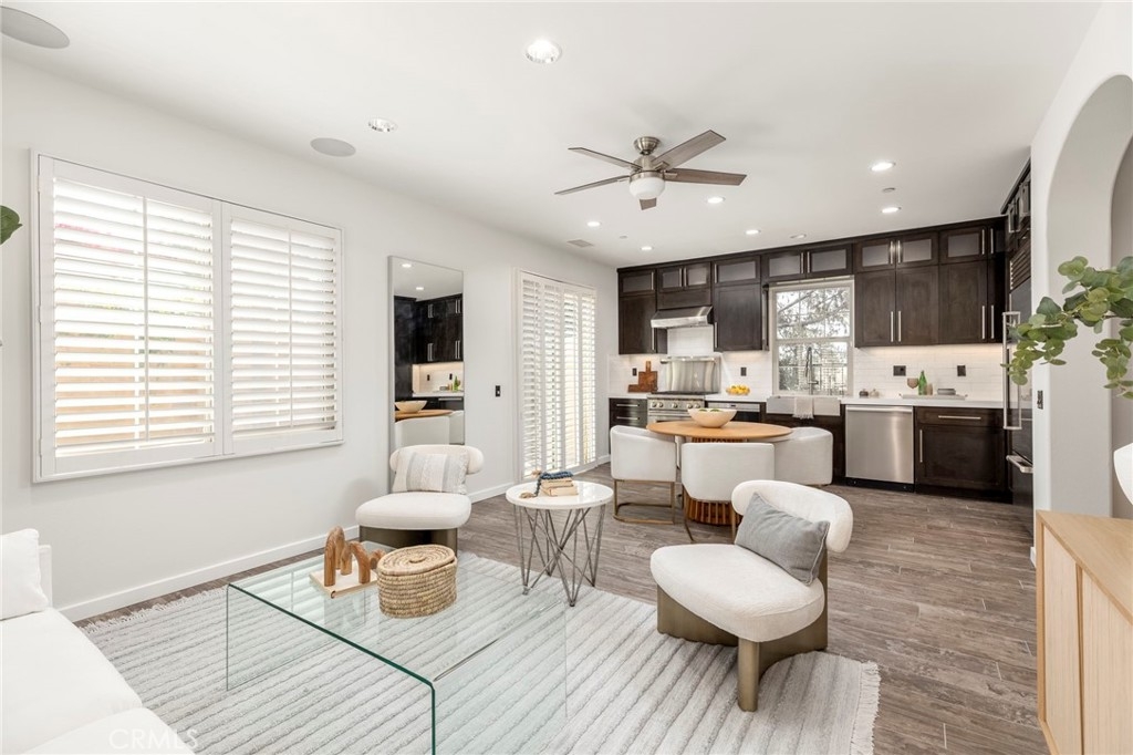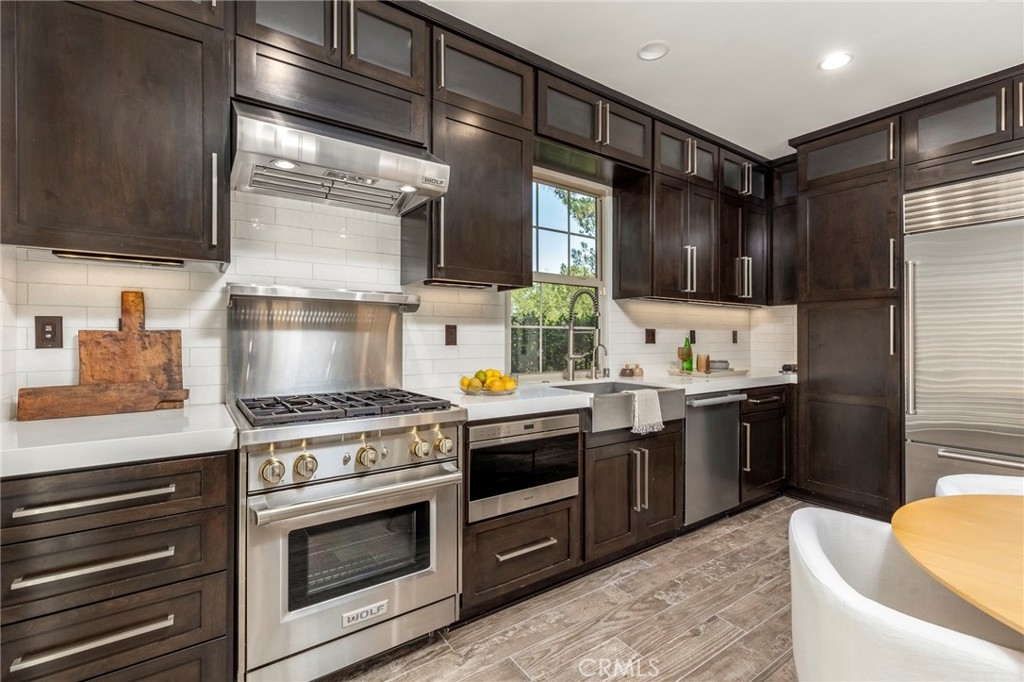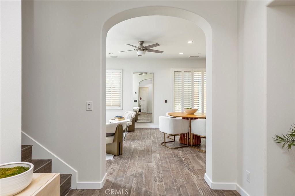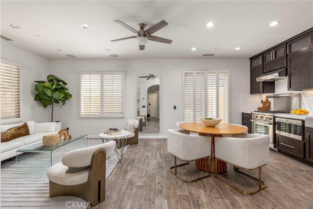 Spectacular Home..Nestled at the end of a serene cul-de-sac, 52 Scarlet Bloom is a stunning detached residence offering the perfect blend of modern convenience and natural tranquility. Surrounded by expansive views of pristine landscapes and open skies, this home is a true sanctuary that feels worlds away, yet remains wonderfully connected. Step inside to an open-concept floor plan bathed in natural light, where every detail has been thoughtfully curated. Elegant wood-grain tile flooring flows seamlessly through the main living areas, complemented by plantation shutters and recessed lighting that enhance the home’s timeless charm. The living room, with its adjacent outdoor spaces and built-in speakers, is an ideal hub for both quiet relaxation and lively entertaining. The chef’s kitchen is a showstopper, boasting custom espresso cabinetry with soft-close features, pull-out pantry drawers, and top-tier stainless steel appliances, including a built-in Sub-Zero refrigerator and Wolf range. Quartz countertops, a new subway tile backsplash, and a farmhouse sink overlooking uninterrupted nature views make this space as functional as it is beautiful. With effortless indoor-outdoor flow, the adjoining dining area is perfect for hosting al fresco dinners or casual brunches. Outside, two distinct entertaining areas invite you to savor the Southern California lifestyle. Whether you're enjoying a morning coffee on the private patio, playing on the low-maintenance artificial turf, or picking fresh citrus from your own backyard tree, this outdoor haven is designed for ultimate enjoyment. Retreat upstairs to the sunlit primary suite, a private oasis with multiple windows, plantation shutters, and a spacious walk-in closet. A separate dressing area with custom built-ins adds a touch of luxury, while recessed lighting and built-in speakers complete the tranquil ambiance. Additional features include new Berber carpet, epoxy-finished garage floors, and a Tesla charging station, ensuring modern ease meets everyday comfort. Situated in a peaceful, nature-rich setting, this home offers the rare combination of privacy, style, and convenience.