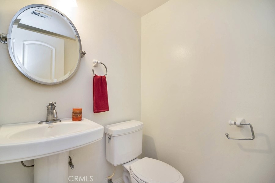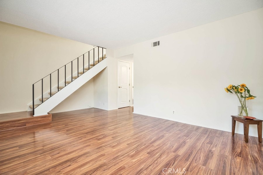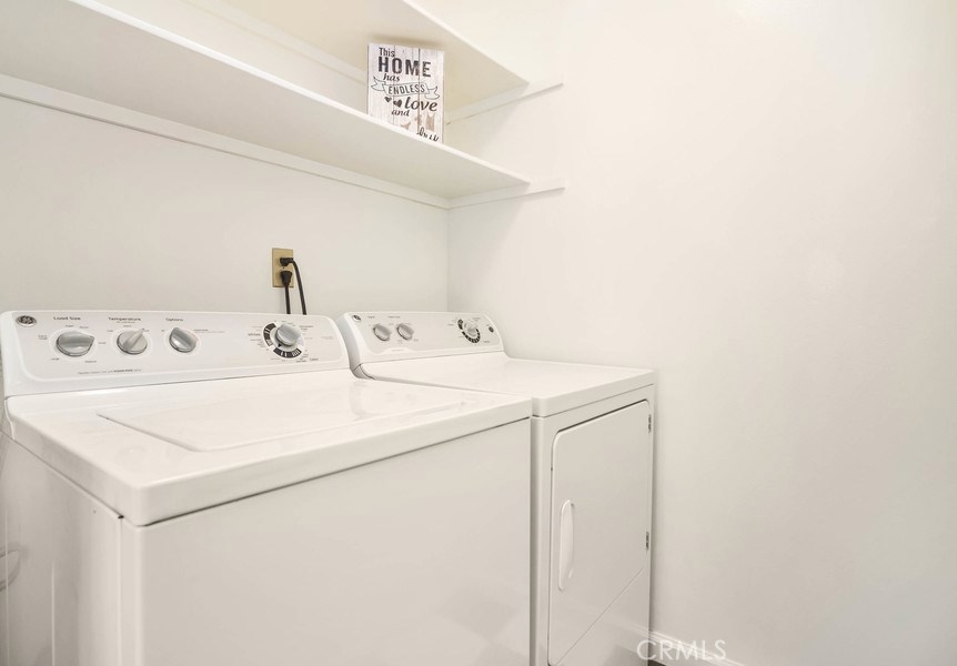 Charming townhome is an end-unit with only one common wall! Newer carpets, fresh paint, granite counters, birch cabinets make this ready to move in! The front entry leads to a spacious living room with lovely laminate flooring. There is an updated powder room between the living room and kitchen at the main level. The big eat-in kitchen has a butcher block for extra counter space and storage. Appliances include stove, oven, fridge and microwave oven. Convenient inside laundry has a washer and dryer. The eat-in area leads out to a cozy patio for enjoying the outdoors. Upstairs are 2 good sized bedrooms with an updated full bath in-between. Central AC and heat are an added feature. The home is ready for move-in! Come and enjoy the wonderful neighborhood in Woodbridge with access to Woodbridge Association amenities like lakes, pools, shopping, Irvine schools and major freeways.