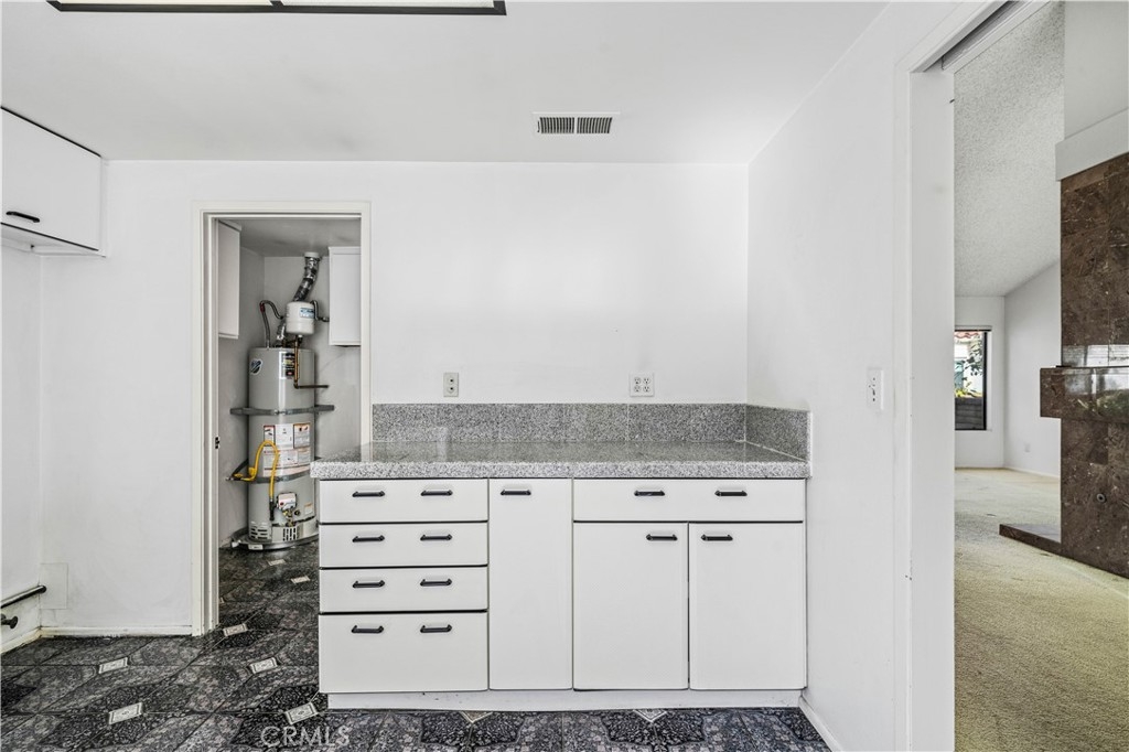 SINGLE-STORY GROUND-LEVEL TOWNHOUSE, NO ONE ABOVE OR BELOW, STEPS FROM COMMUNITY POOL AND SPA! Fixer Upper with 2 Bedrooms and 1.5 bathrooms. Enter through the front gate and block-walled patio into an open floor plan with cathedral ceilings in Living and Dining Rooms. In the back of the home is a spacious and private Primary Bedroom and ensuite bathroom, including vanity area and shower privacy door, with glass slider to an atrium open to the sky. The Kitchen, with doorway to the Dining Room, has windows and a door to the atrium, where you can relax in the open air, dine and barbeque. The front bedroom, which can be used as an office, with a powder room and closet has windows to the front and side letting in lots of natural light and views of trees and plants. Some homeowners of this same model have reconfigured the powder room to add a shower, but HOA approval and Irvine city permit would be required. A large detached 2-car garage with storage is right around the corner. Acclaimed Irvine School District, including University High. Next to San Joaquin Golf Course, Racquet Club of Irvine and Rancho Senior Center. Conveniently located near UCI, William Mason Park, John Wayne Airport, Newport Beach, Fashion Island and walking distance to shops and entertainment. Water, trash, and exterior maintenance included in HOA dues. A great opportunity to remodel this home the way you want!