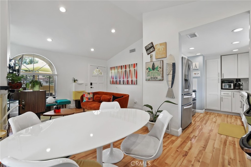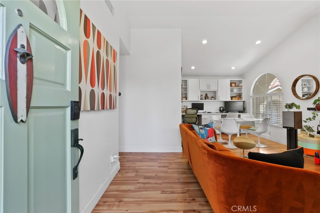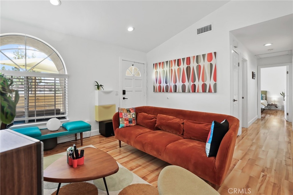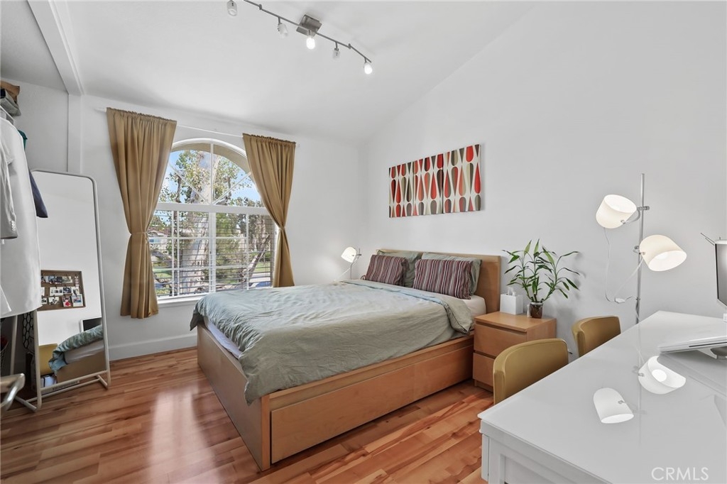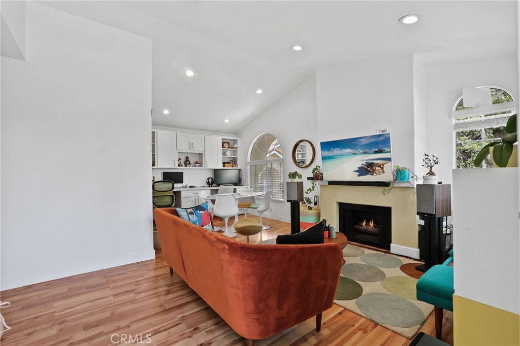 Discover this stunning, completely remodeled upstairs end-unit condo in the Westpark Tiempo community of Irvine. You are welcomed into the bright, open family room featuring a vaulted ceiling and an abundance of natural light pouring into this condo. The family room also has a cozy gas fireplace that seamlessly flows into the dining area, which includes a custom built-in work desk that doubles as a buffet area. The modern kitchen is equipped with quartz countertops and backsplash, white shaker soft-close cabinets, stainless steel appliances, and a deep sink with a custom faucet. The primary bedroom boasts dual closets, sliding doors to a private balcony, and an en-suite bathroom with a quartz-topped vanity and an oversized walk-in shower. The generously sized secondary bedroom with vaulted ceilings is adjacent to the full-hall bathroom. Additional features include closet organizers, Kohler sinks and toilets, touchless faucets in kitchen/primary bath, an indoor laundry closet with a washer and dryer, recessed lighting, scraped ceilings, a new heater pump/Air Conditioner and ductwork, kitchen water filtration system & nest thermostat. Enjoy the spacious front patio, a fully finished one-car garage with epoxy garage floor coating, an outlet for an Electric Vehicle charger, and an additional carport space. There is no one living above or below you! Enjoy community amenities such as a refreshing pool and soothing spa, and benefit from nearby shopping, dining options, and top-rated Irvine schools. No Mello Roos!