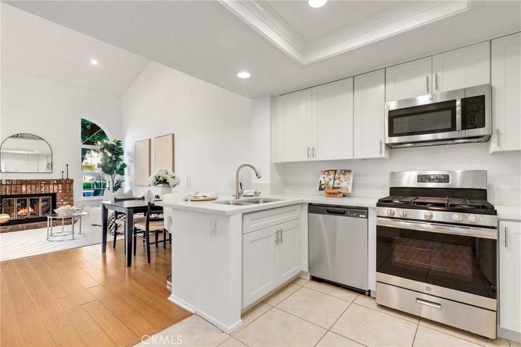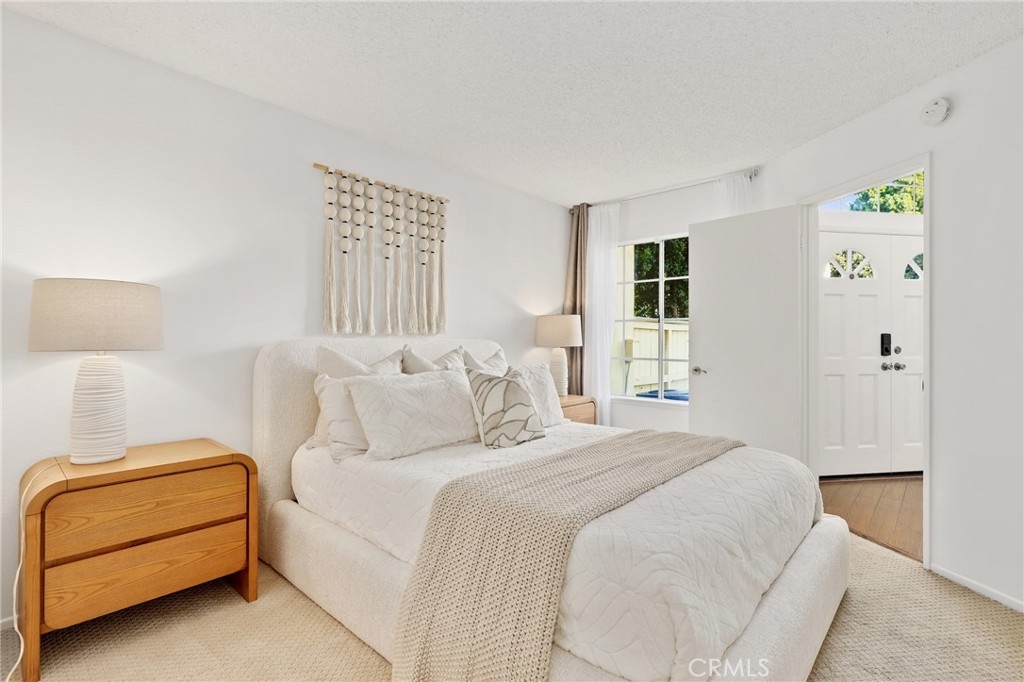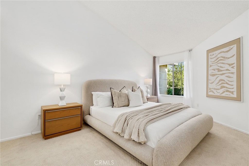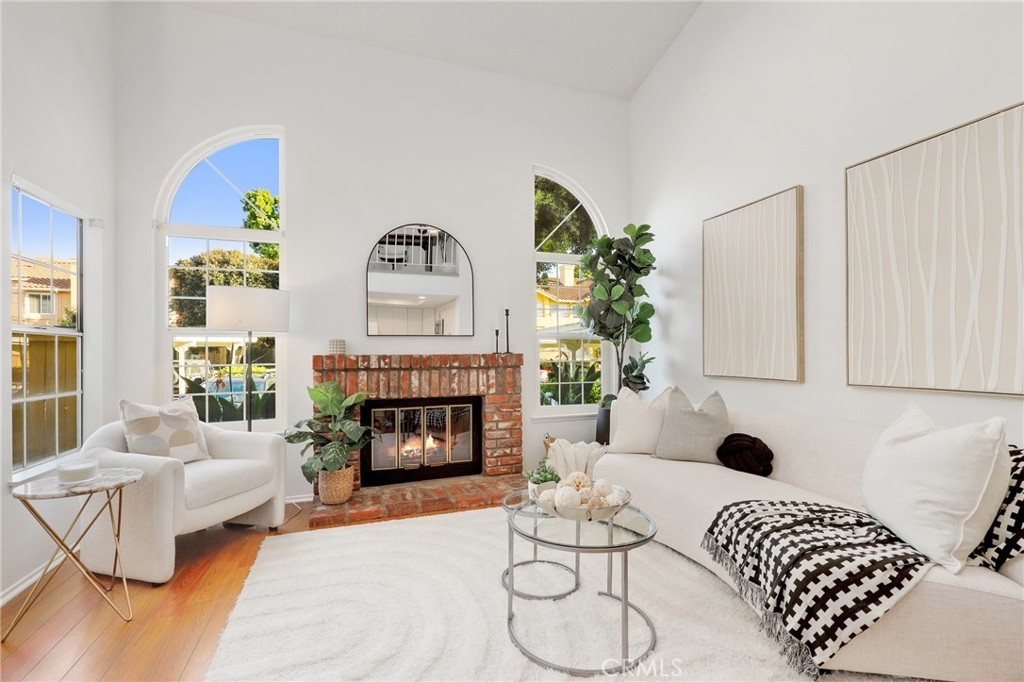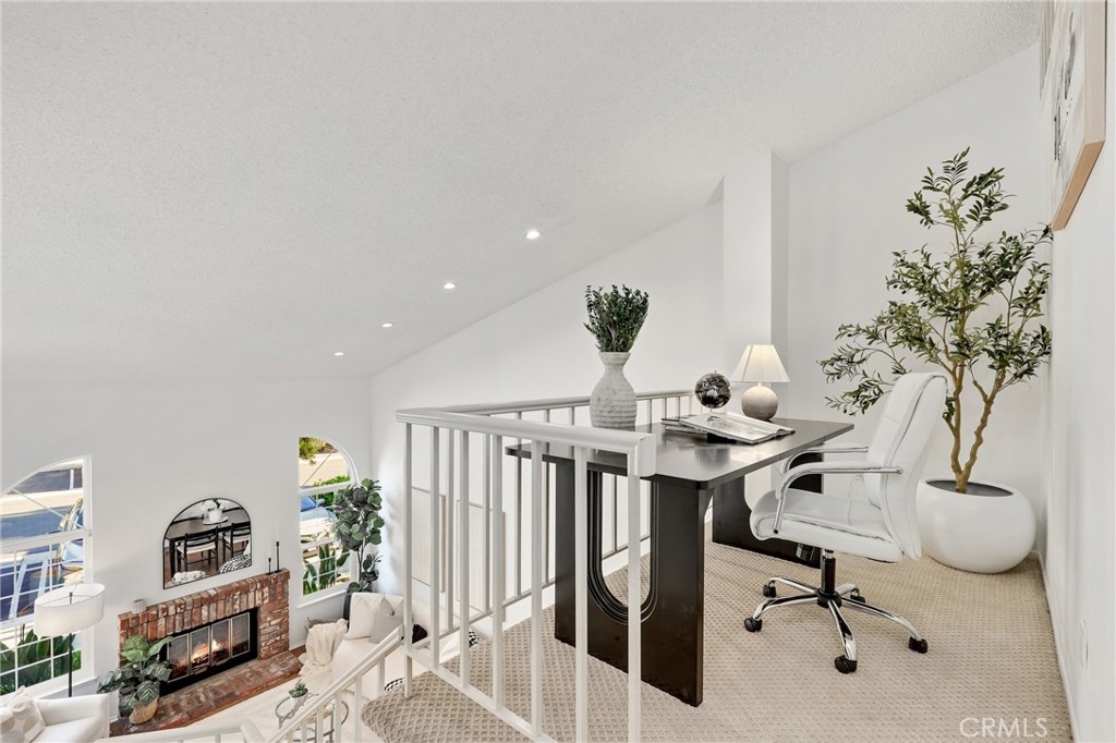 Lovely two-bedroom home in the sought-after Westpark Tiempo community. No one above or below! Enter through double doors into a bright and open living space featuring soaring ceilings, recessed lighting, and a charming brick fireplace. Large windows fill the home with natural light. The dining area opens to the kitchen, which offers white cabinetry, a breakfast bar, and in-unit laundry. The downstairs bedroom is generously sized. The upstairs landing features a loft—ideal for a home office. The spacious primary suite includes a bathroom with dual sinks. This home also includes a garage and one designated carport space, and residents enjoy access to the community pool and spa. Come schedule your showing today!