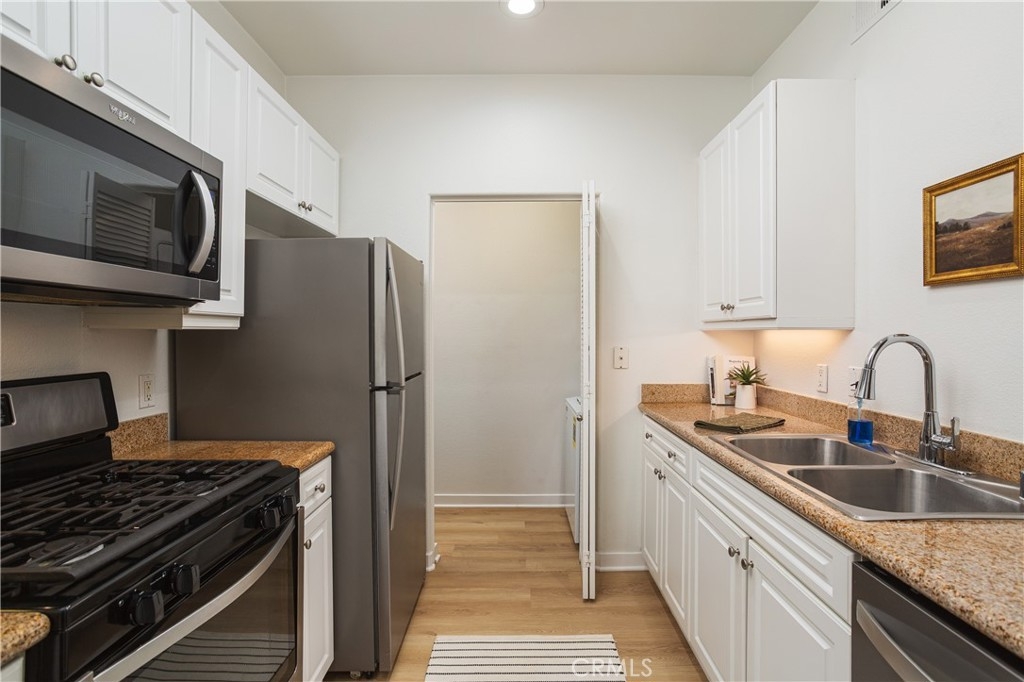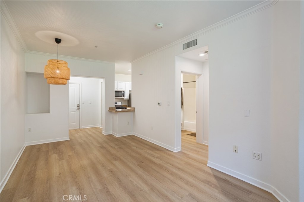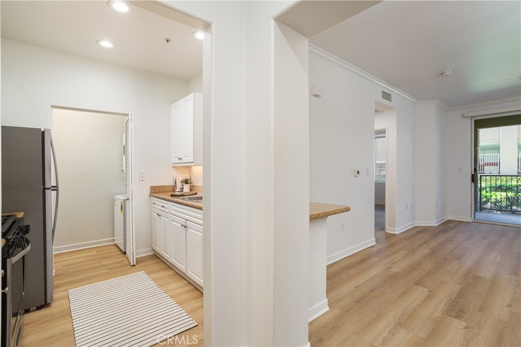 Refreshed with brand new luxury vinyl plank flooring throughout. Welcome to the highly sought-after Watermarke Plan 1 residence—move-in ready! This inviting home offers a spacious one-bedroom layout, complete with a walk-in closet, a spacious bathroom, a dining area, a living room, and in-home laundry, all within approximately 648 square feet. Located on the ground floor, this upgraded unit features granite countertops, fresh white paint, and newer Whirlpool stainless steel appliances. It also includes one assigned parking spot. The Watermarke Community provides newly renovated, five-star resort-style amenities, including an on-site concierge, a fitness center, a business center, a library, an elegant game room and bar, a private movie theater, a chef’s kitchen, three pools with poolside cabanas, four spas, a children’s play park, and basketball and tennis courts. Conveniently situated near the 405 and 55 freeways, Fashion Island, Corona Del Mar Beach, and the award-winning University of California, Irvine. (Refrigerator, washer, and dryer are included.)