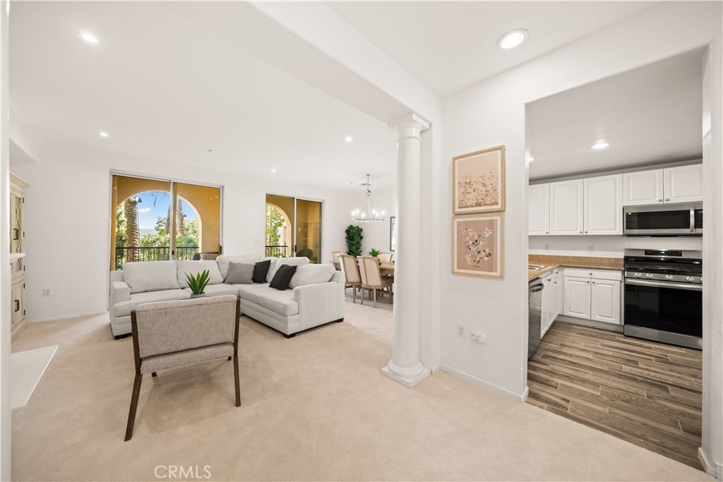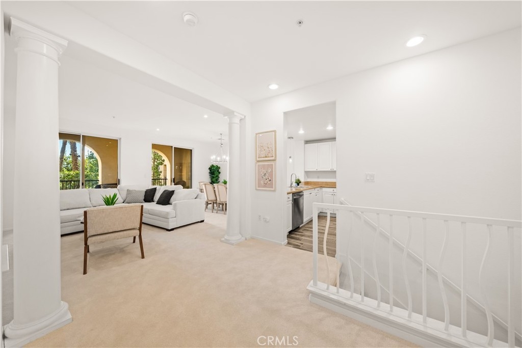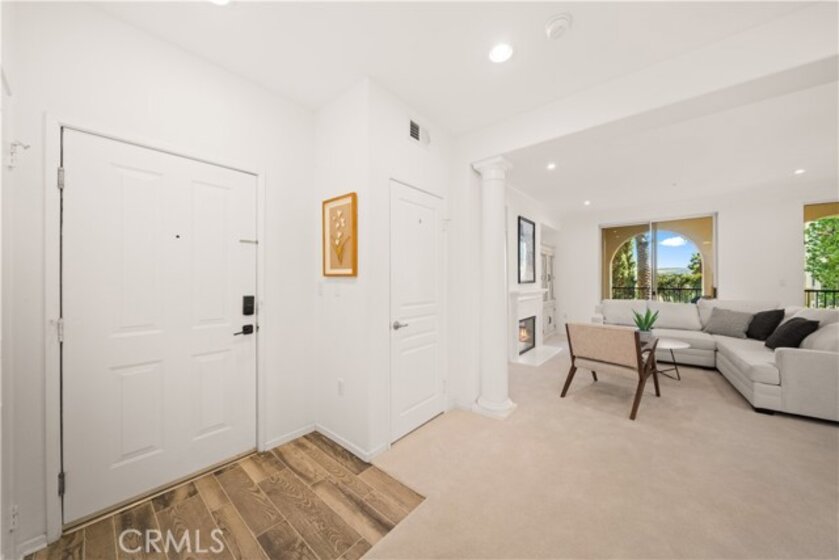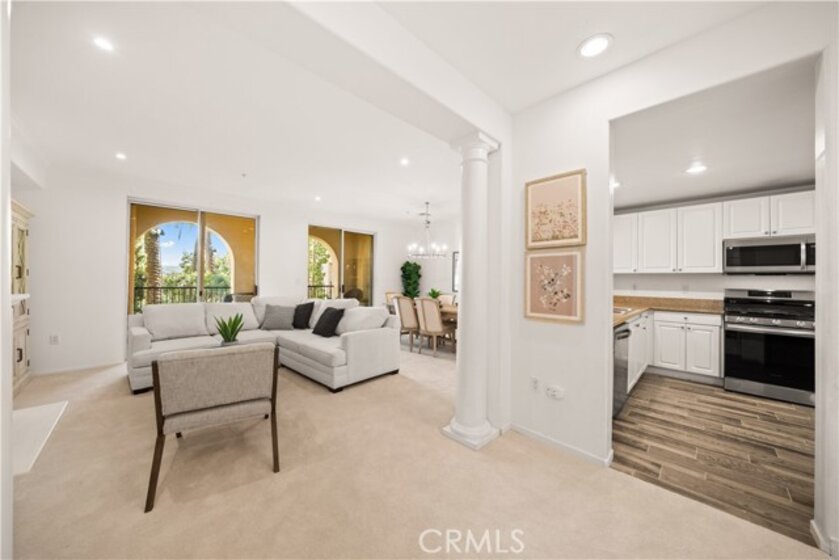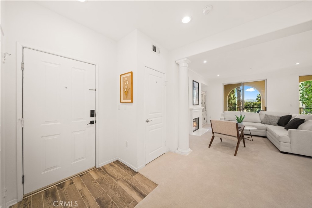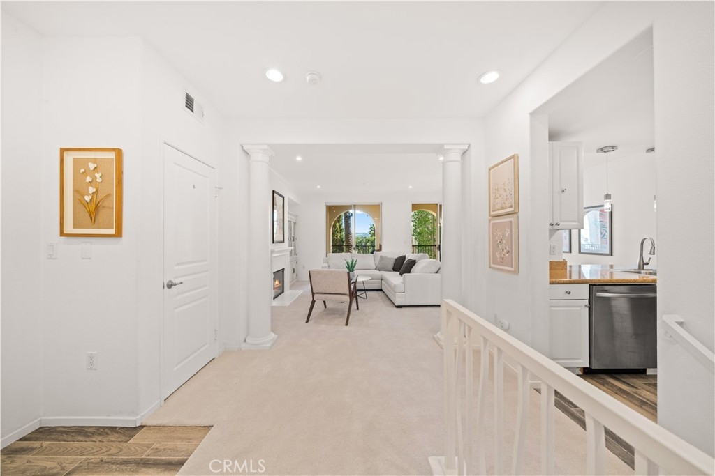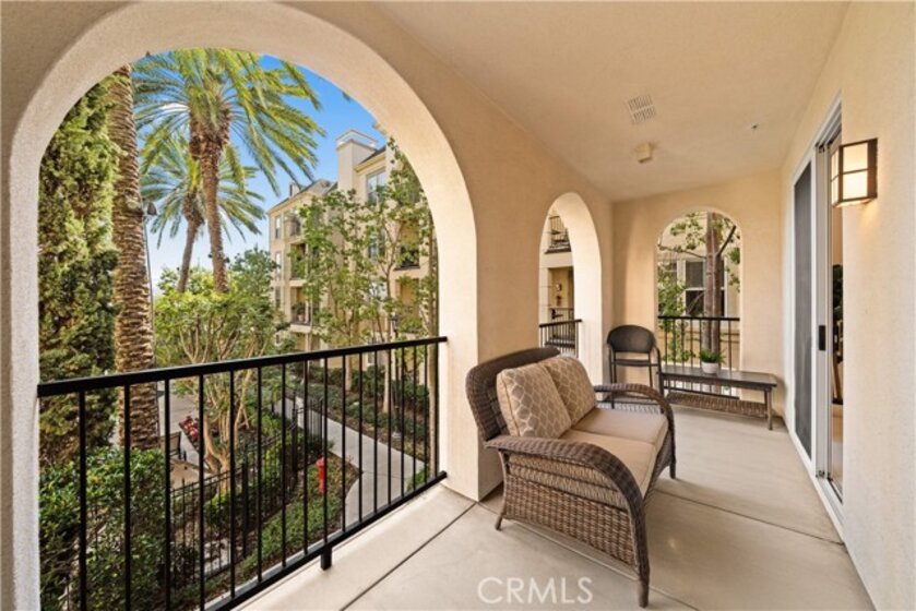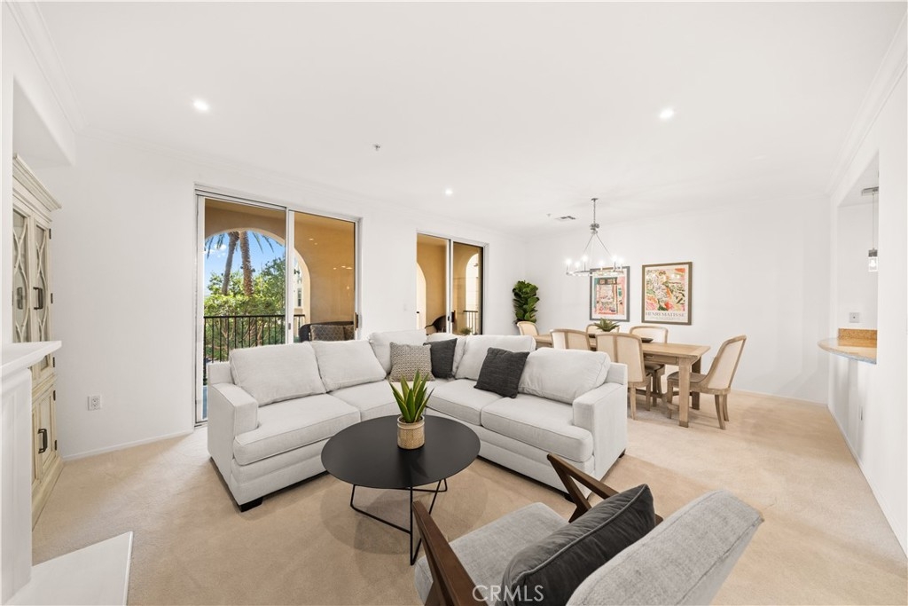 Welcome to 2250 Watermarke Place — resort-style living at its finest with breathtaking views of the Nature Preserve. This rarely available Haddon Hall floor plan offers a true townhouse feel with 2 bedrooms and 2.5 bathrooms, combining privacy, comfort, and resort-style elegance. Entering on the second level, you are immediately welcomed by 9-foot ceilings, freshly painted interiors in a soft whisper white, and brand-new carpet throughout the home, creating a bright, clean, and truly move-in-ready living environment. The spacious great room features a cozy fireplace and dining area highlighted by a new chandelier, seamlessly opening to an oversized patio with dual sliding doors—perfect for enjoying morning coffee while overlooking the lush garden, pool, and Nature Preserve views. The kitchen is well-appointed with a gas range, white cabinetry, and granite countertops, ideal for both everyday living and entertaining. A conveniently located powder room and laundry closet complete the upper level. Downstairs, the private bedroom level includes a generous primary suite with a large walk-in closet, dual sinks, soaking tub, and separate shower, along with a comfortable secondary bedroom. Both bedrooms feature brand-new carpeting, reinforcing the home’s freshly updated, turn-key condition. An additional full bathroom and linen closet provide ample storage. Enjoy easy access to the jacuzzi and pool, along with two reserved, side-by-side assigned parking spaces in the secured, gated parking garage—an exceptional convenience in this community. Residents of Watermarke enjoy luxury resort-style amenities, including onsite concierge service, fitness center, three pools (main pool heated year-round), jacuzzi, clubhouse, billiard room, private movie screening room, basketball and tennis courts. Ideally located in the heart of Orange County, just minutes from UC Irvine, John Wayne Airport, beaches, Fashion Island, nature trails, premier shopping and dining, with convenient access to major Southern California freeways.