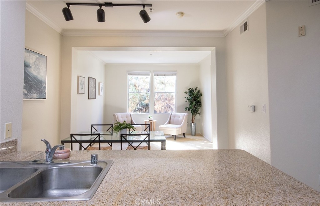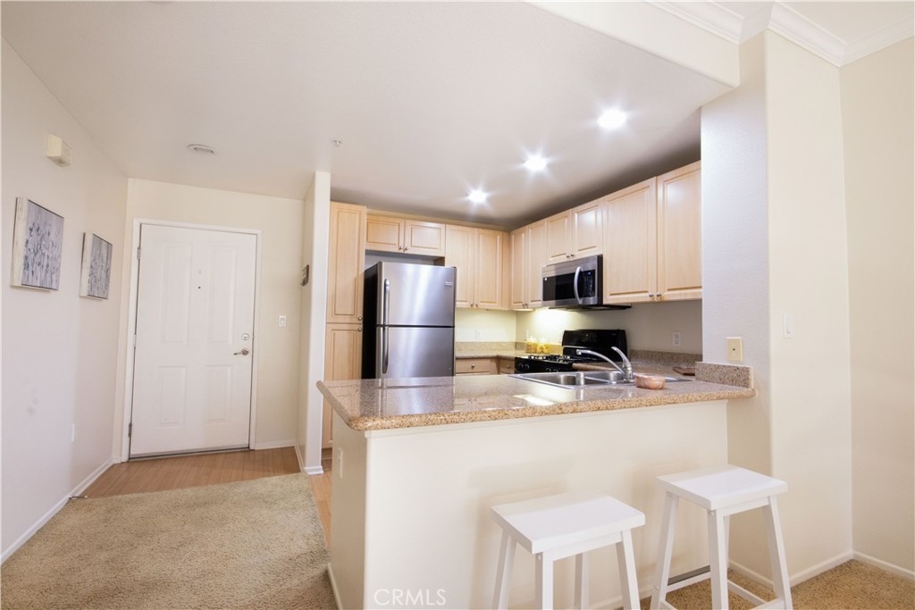 Embrace the elegance of the esteemed Watermarke Community, where luxurious resort-style living meets the vibrant heart of Irvine. This spacious one-bedroom, one-bathroom residence is one of the larger plans in the community, spanning 868 sq. ft. and features a den area for additional living options. The full-service kitchen flows effortlessly into the entertaining area, creating an inviting space for gatherings. Step into the roomy bedroom, which opens to a generously sized patio showcasing breathtaking panoramic views of the hills. Upgrades include a newer water heater, a new microwave and fresh paint. Watermarke is rich in amenities, offering concierge services, a business center, state-of-the-art fitness facilities, a movie room, three pools, four spas, and indoor basketball and tennis courts. Experience the peace of a secure subterranean parking structure with two spaces, including one conveniently near the elevator, plus ample guest parking. Perfectly located near UCI and a diverse array of retail and dining options, Watermarke connects you to the 405 Freeway and John Wayne Airport, inviting you to live your best life.