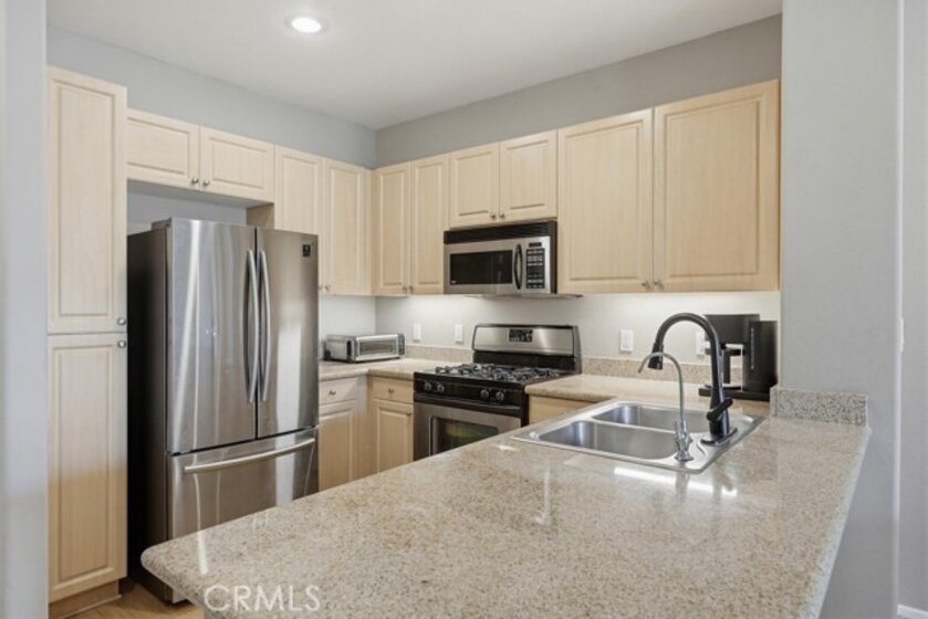 Top-floor opportunity in the highly sought-after Watermarke community in Irvine! Experience resort-style living ideally located near the airport, freeways, shopping, dining, and major business centers. This desirable 1-bedroom plus spacious den offers a versatile layout, perfect for a home office or flex space. The open floor plan provides seamless flow, with the kitchen opening to the dining and living areas, creating a bright and inviting living space. The bedroom features a walk-in closet, while the bathroom offers dual sinks for added comfort and functionality. You’ll also find in-unit laundry conveniently located in a closet. Enjoy a spacious private balcony with beautiful courtyard and pool views, perfect for relaxing or entertaining. Located within a gated community, this unit includes two parking spaces—a rare and valuable feature. HOA dues cover water and trash. Residents enjoy an array of resort-style amenities including a clubhouse, pools, spas, fitness centers, BBQ areas, tennis courts, and a basketball court.