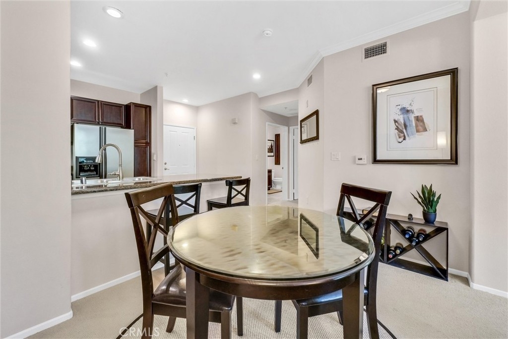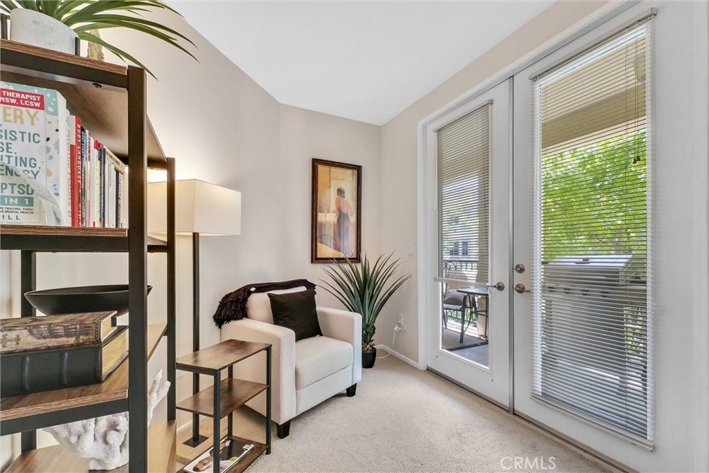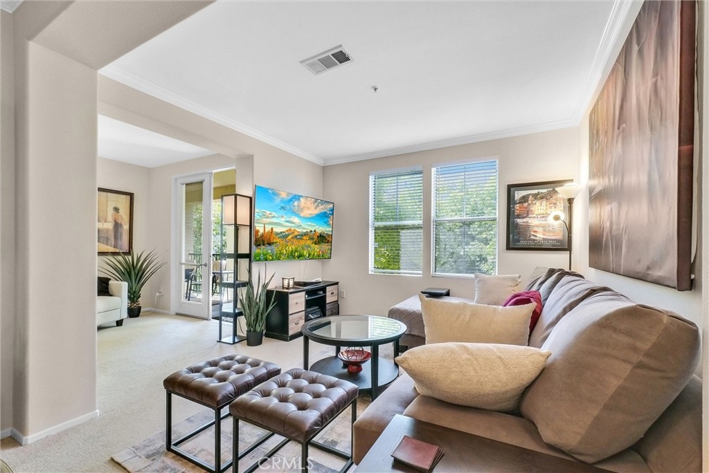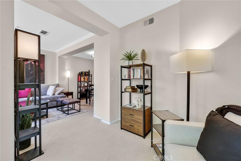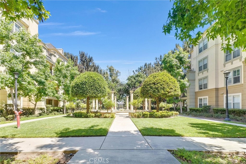 Welcome to your dream home in the prestigious Watermarke Community. This elegant Dorchester model condominium, a highly desirable unit, boasts a spacious 868 sq ft layout. The open floor plan includes a modern kitchen that features a refrigerator, dishwasher, and ample cabinet space. The spacious living room provides the perfect area for entertaining and is connected to a versatile den/office space by the balcony entrance. The large bedroom features a generous primary closet, while the large bathroom includes a laundry room with a washer and dryer. Additional updates include a newer ceiling fan and water heater. The expansive balcony, surrounded by trees, offers a private oasis with abundant natural sunlight. This beautifully maintained unit is quiet and serene, with access to top-notch community amenities, including a fitness room, three pools, spas, a meditation garden, monthly movie screenings, and regular community events. It is located on the cusp of Newport Beach and it is near Park Place Shopping Center, Irvine University Town Center, UCI, hospitals, across the street from San Joaquin Sanctuary, Irvine Spectrum, and beaches. With easy access to the 405 and 73 freeways, this home offers the best of all worlds.