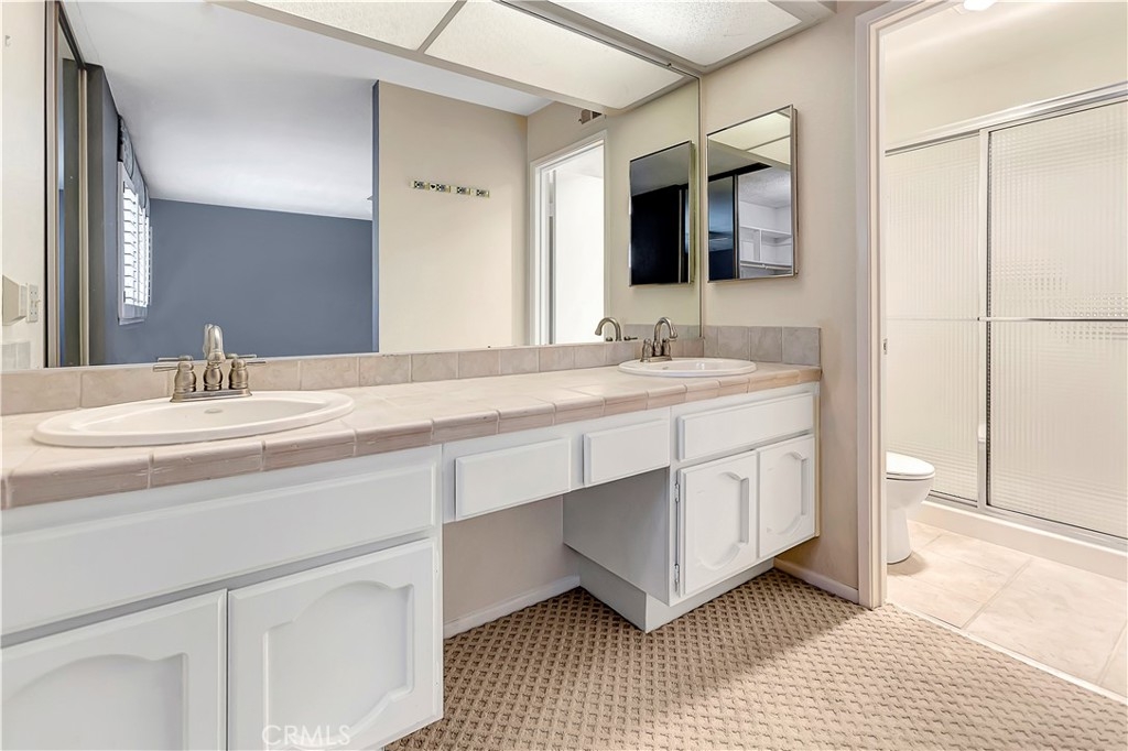 A rarely on-market townhome located in the Wildflower neighborhood of Irvine is nearly move-in ready! Soaring ceilings and open floorplan. Enter into the inviting living room featuring a fireplace and light-catching sliding doors with Plantation shutters that lead to the backyard. The living room seamlessly flows into the dining room and kitchen. The kitchen has newer cabinets, tumbled marble tile countertops, direct access to the two-car garage. A powder room, and large walk-in hall closet complete the first level. Upstairs, the first spacious master suite features a bathroom with dual sinks, a walk-in shower, and a huge walk-in closet. Across the hall, a second master suite also features a full bathroom. Centrally located near shopping and dining options, easy freeway access and award-winning Irvine Unified schools.
